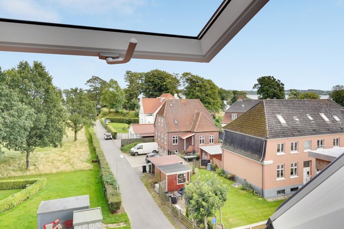 I mange boliger er køkkenet hjemmets hjerte og naturlige samlingspunkt. Her er det derimod den store stue på øverste plan, som gør lejligheden helt unik. Et helt etageplan dedikeret til ophold, lys og udsigt. Ifølge sælger bliver man heroppe mødt af solopgangen over vandet - en særlig stemning, der sætter tonen for dagen. Lejligheden vender mod øst, syd og vest, hvilket betyder, at solen følger boligen hele dagen, fra morgenens første lys til solnedgangen.