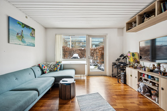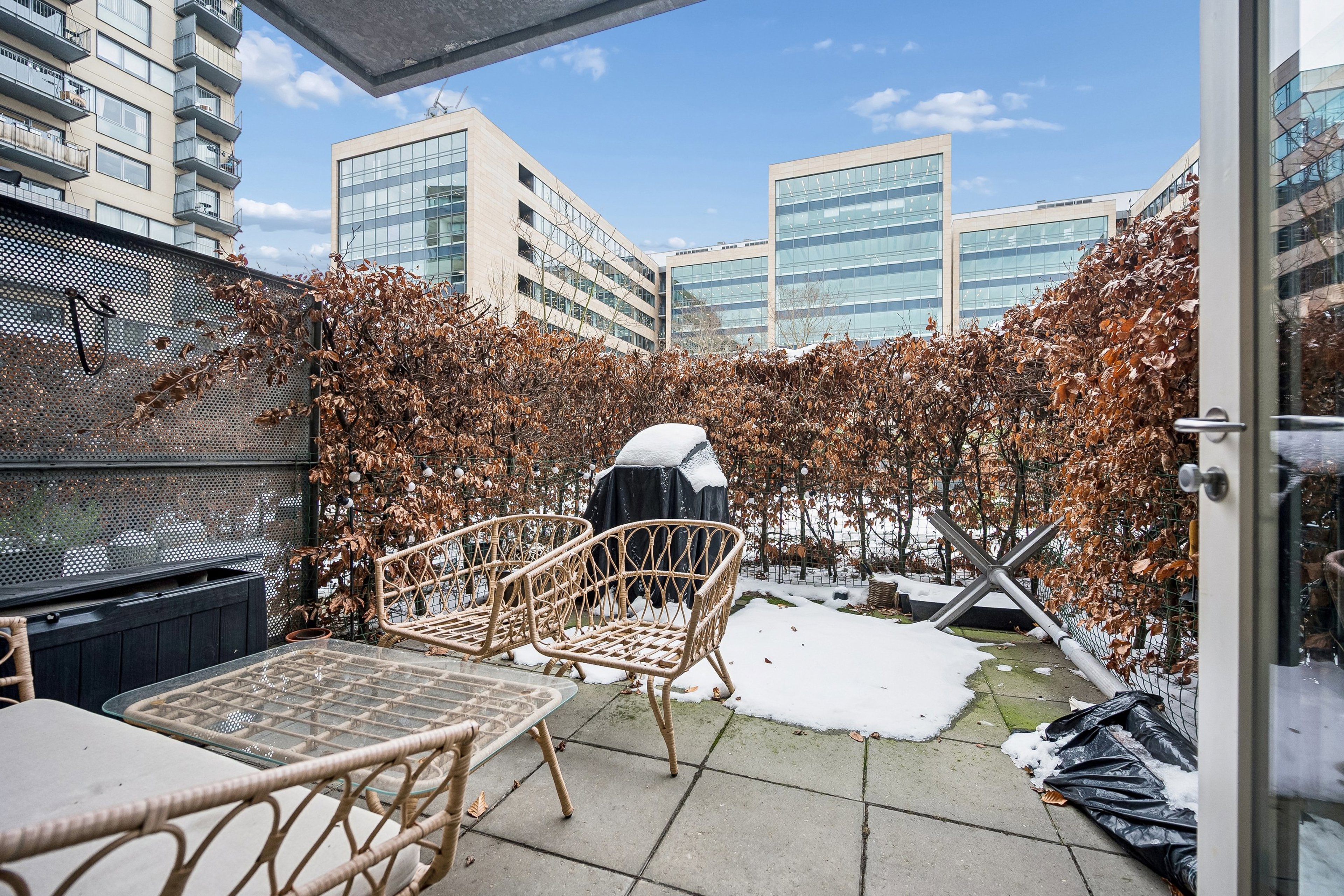 Du flytter ind i Parkhusene II – en god og veldrevet ejerforening, der har hjemme i en moderne ejendom fra 2005. Din lejlighed ligger i stueetagen, så du bliver den heldige ejer af din helt egen have til de fremtidige sommerdage. Når solen skinner, vil stuen smelte sammen med den store fliseterrasse, der gemmer sig væk bag hegn og hæk. Terrassen orienterer sig perfekt mod solen fra syd, mens den samtidig ligger overfor en erhvervsbygning, hvilket betyder, at den er privat og ugeneret på helligdage, i weekenderne, og når du vender hjem fra job. I forlængelse af din solrige have møder du desuden et velanlagt gårdanlæg, der skaber god afstand til vejen.