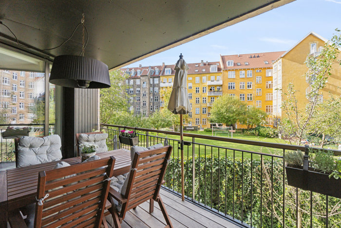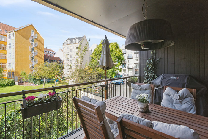 Beliggenheden kunne næsten ikke være bedre. Fra din rolige altan har du kun få minutters gang til Enghave Plads med metro, hyggelige caféer, restauranter og specialbutikker – alt det, der gør Vesterbro til et af Københavns mest levende og eftertragtede kvarterer.