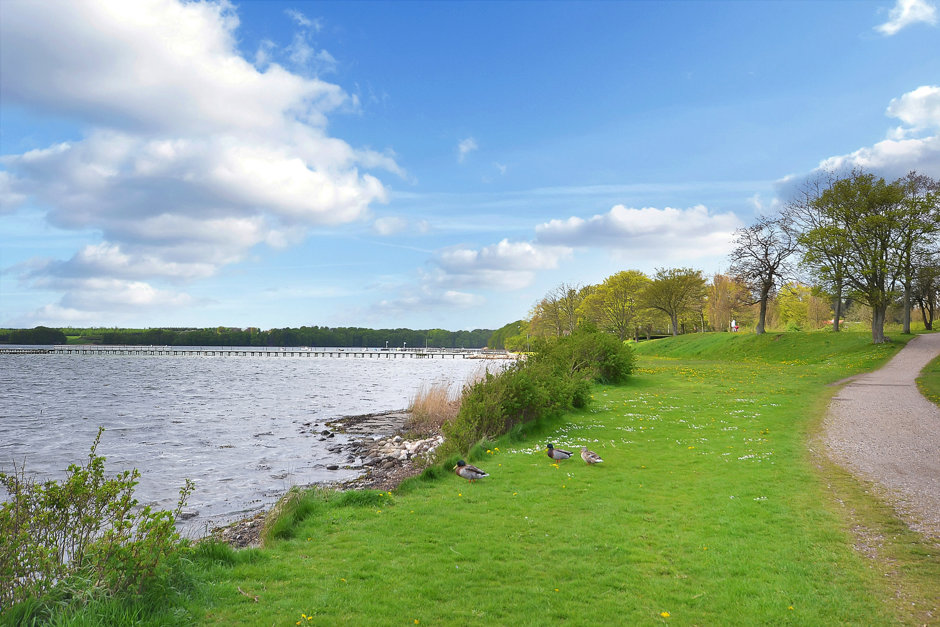 Trods de fredelige og naturskønne omgivelser er der gåafstand til den hyggelige bymidte i Middelfart, hvor caféer, specialbutikker og hverdagsliv skaber en levende ramme om tilværelsen.