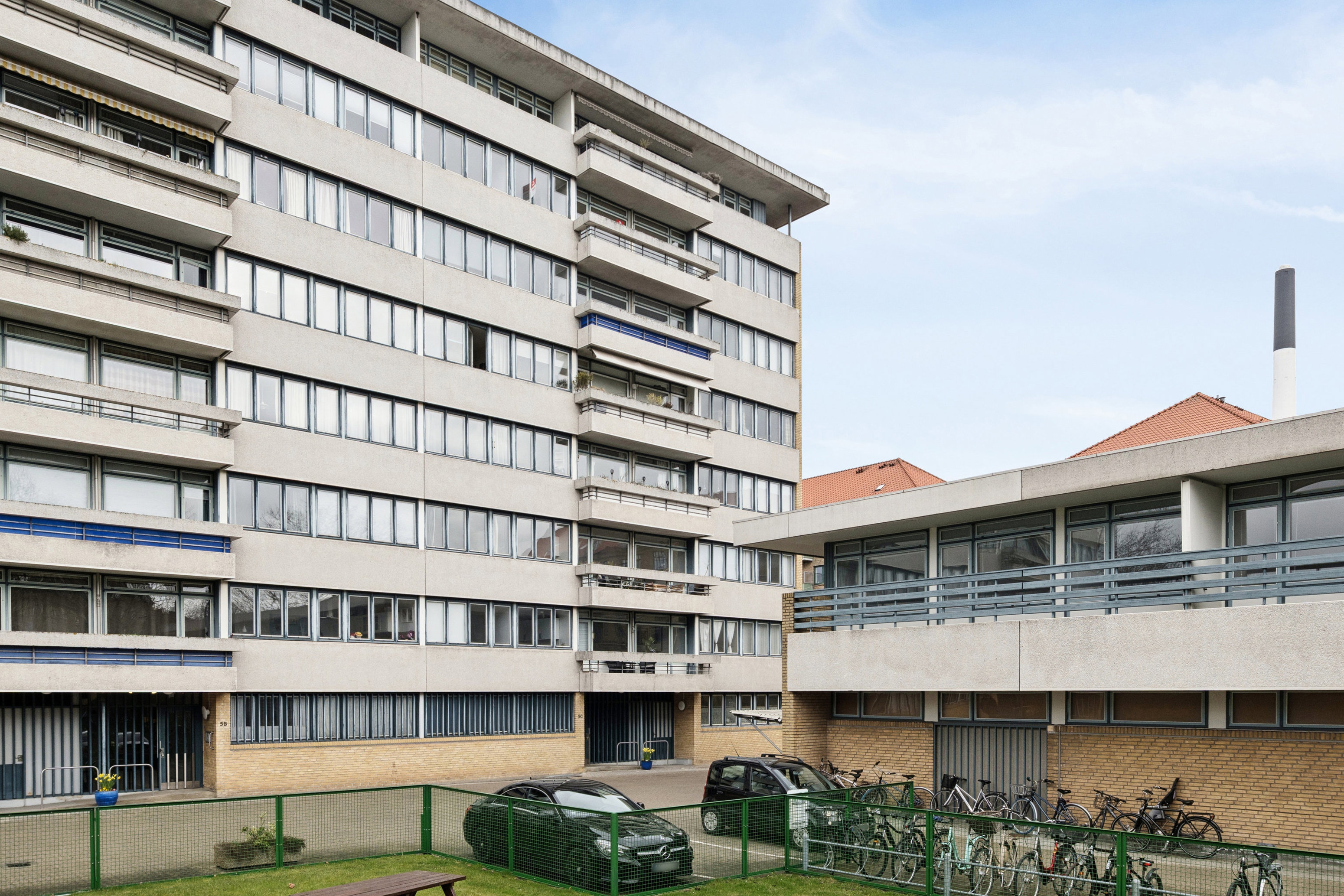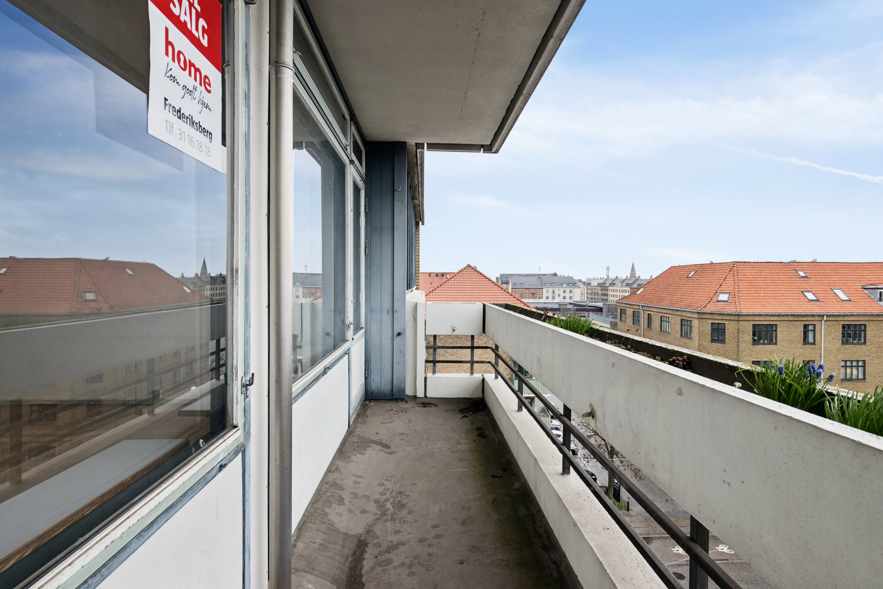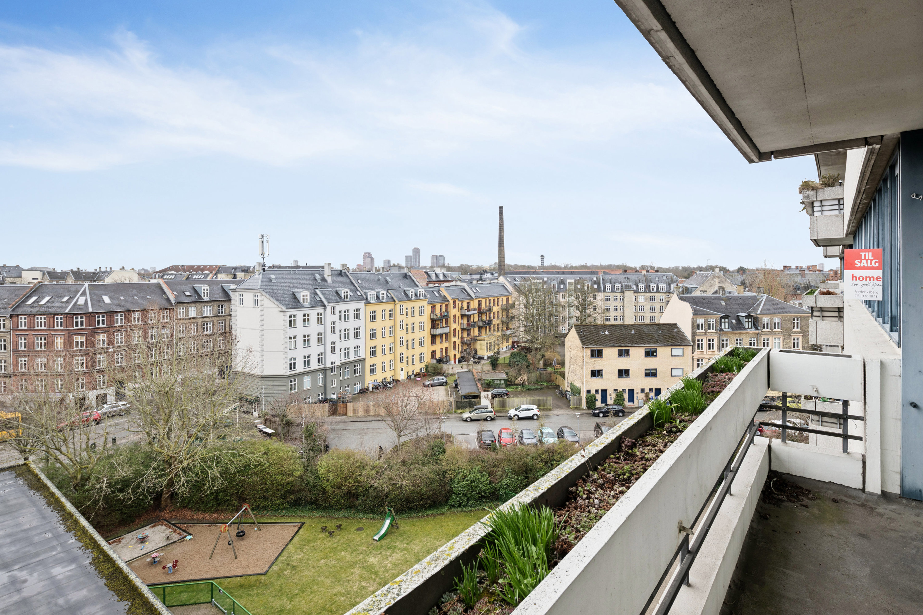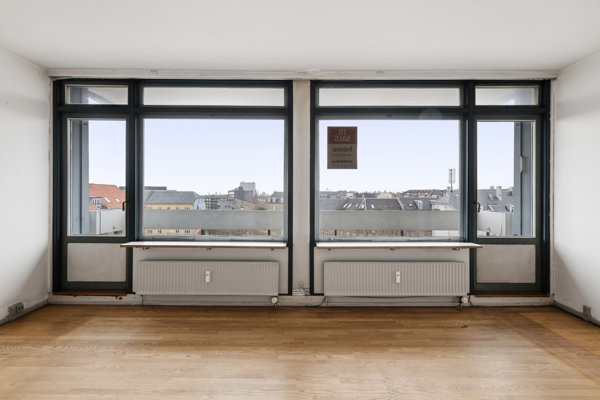 I flytter ind i en klassisk 60’er-ejendom, hvor lejligheden ligger på 6. sal, så I får selskab af en flot udsigt, der strækker sig langt ind over byens tage – og når I nyder solen på den store altan, kan I se hele vejen til Zoo-tårnet i horisonten. I kan også rykke ned i solen på det grønne fællesareal, der er indrettet med legeplads, og som beboere i ejendommen kan I desuden benytte jer af p-pladserne både i kælderen og på terræn.