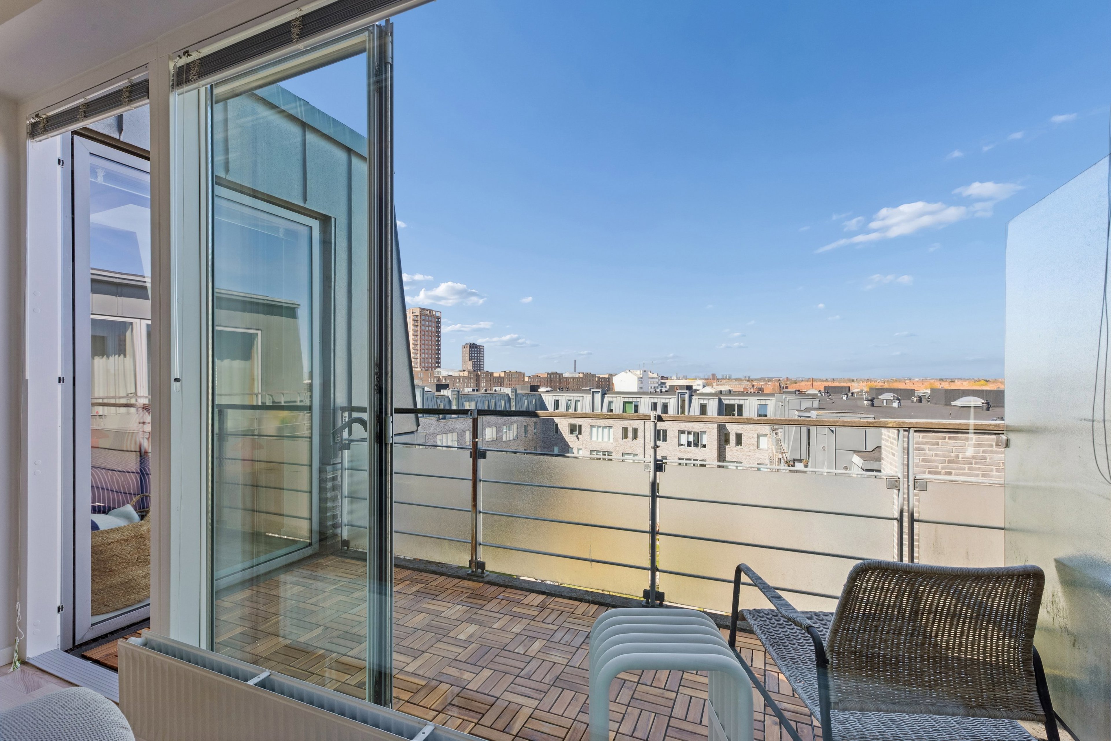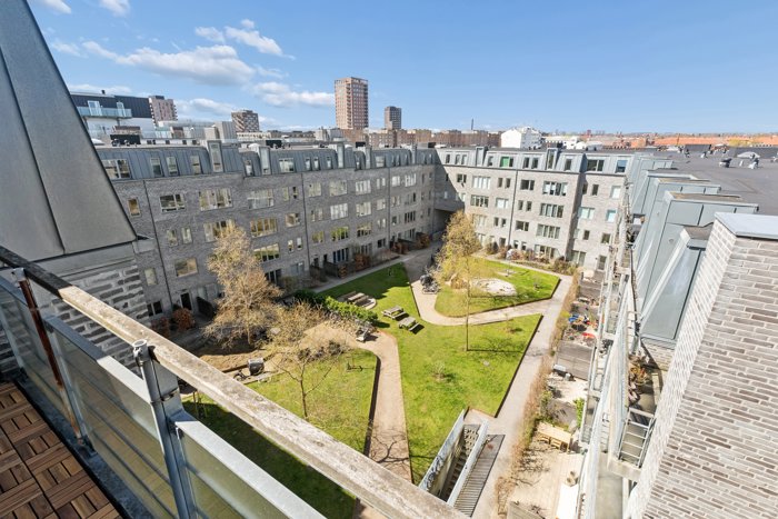 Altanen vender direkte ud til ejendommens grønne gård, der byder på græs og bænkesæt. Lige ved siden af ejendommen ligger Grønningen, et af kvarterets grønne byrum med legeplads og siddeområder, og du er heller ikke langt fra Valby Maskinfabrik, hvor du finder gode spisesteder, dagligvarer og klatrehal.