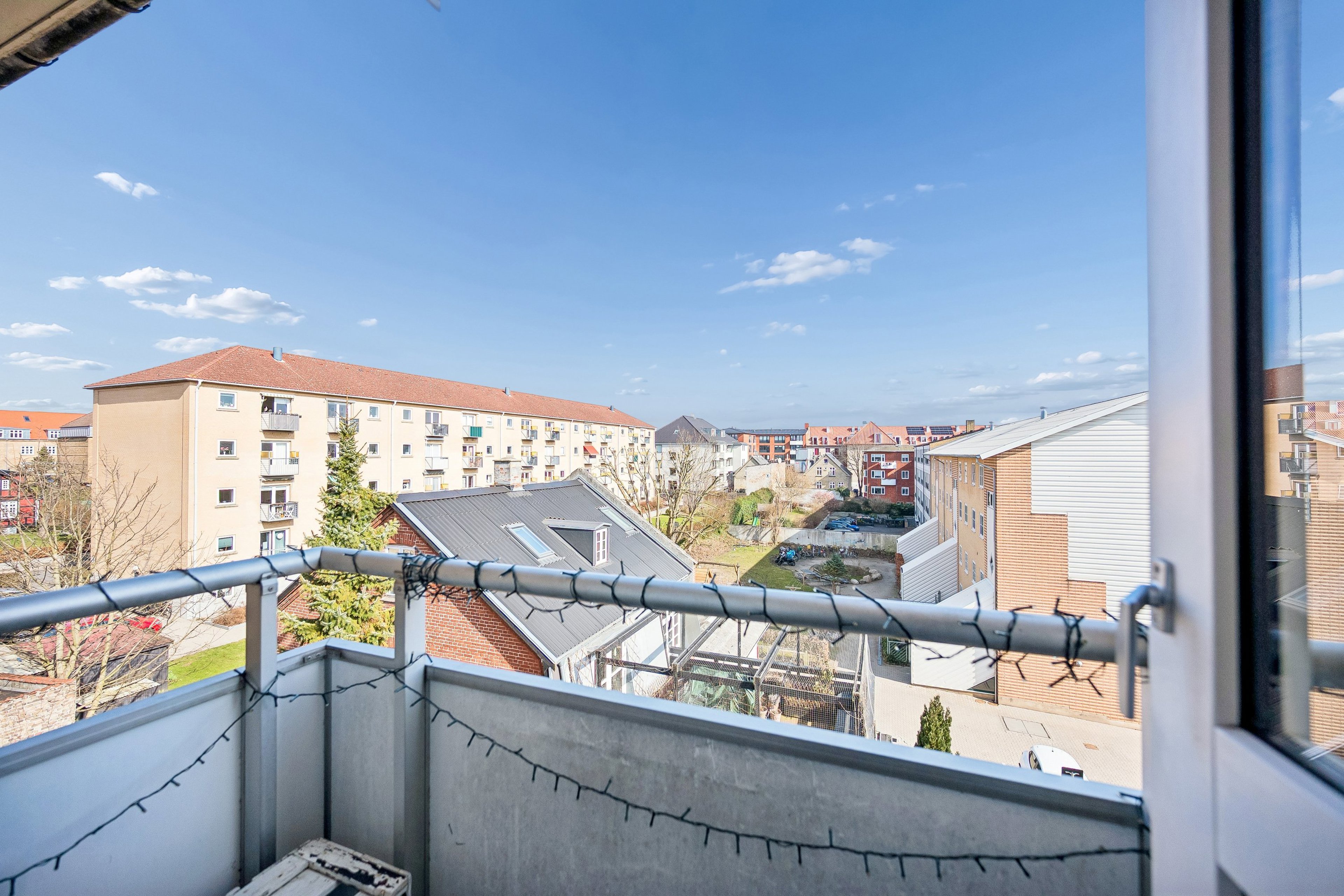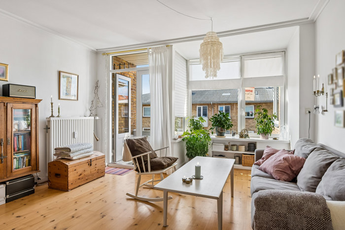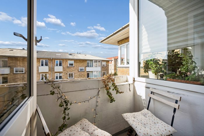 Du får et badeværelse med separat brus og et nydeligt køkken, der er indrettet med bl.a. en vaskemaskine. Dertil kommer et soveværelse, hvor du vågner til morgensolen, og senere kan du følge med solen ind i stuen, der fuldendes af store, sydvestvendte vinduer. På samme måde kan du følge solen på de to altaner, der ligger i forlængelse af henholdsvis soveværelset og stuen, hvor de giver dig to dejlige uderum til sommerdagene.