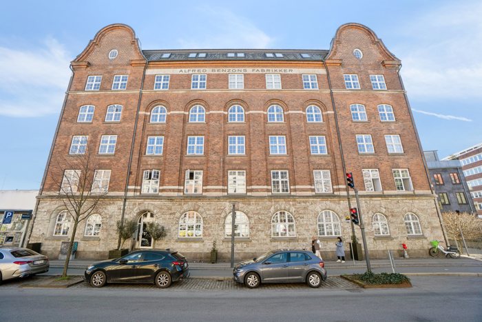 På Halmtorvet 29A venter en nydelig og velholdt ejendom fra 1908. Den historiske ejendom rummede tidligere Alfred Benzons fabrikker, mens Kant Arkitekter sidenhen har sørget for at istandsætte og omdanne boligerne til lækre og lysfyldte lejligheder, der stod klar i 2008.