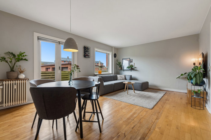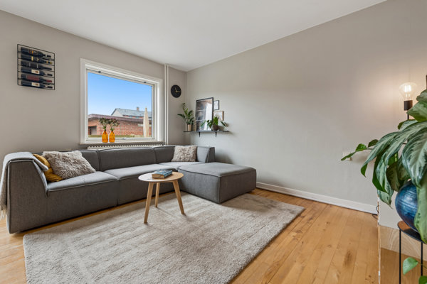 Lejligheden byder på to gode soveværelser, som giver mulighed for både ro og privatliv. Den rummelige og lyse stue er det centrale samlingspunkt i hjemmet, og her får du et fantastisk lysindfald, som skaber en behagelig atmosfære.