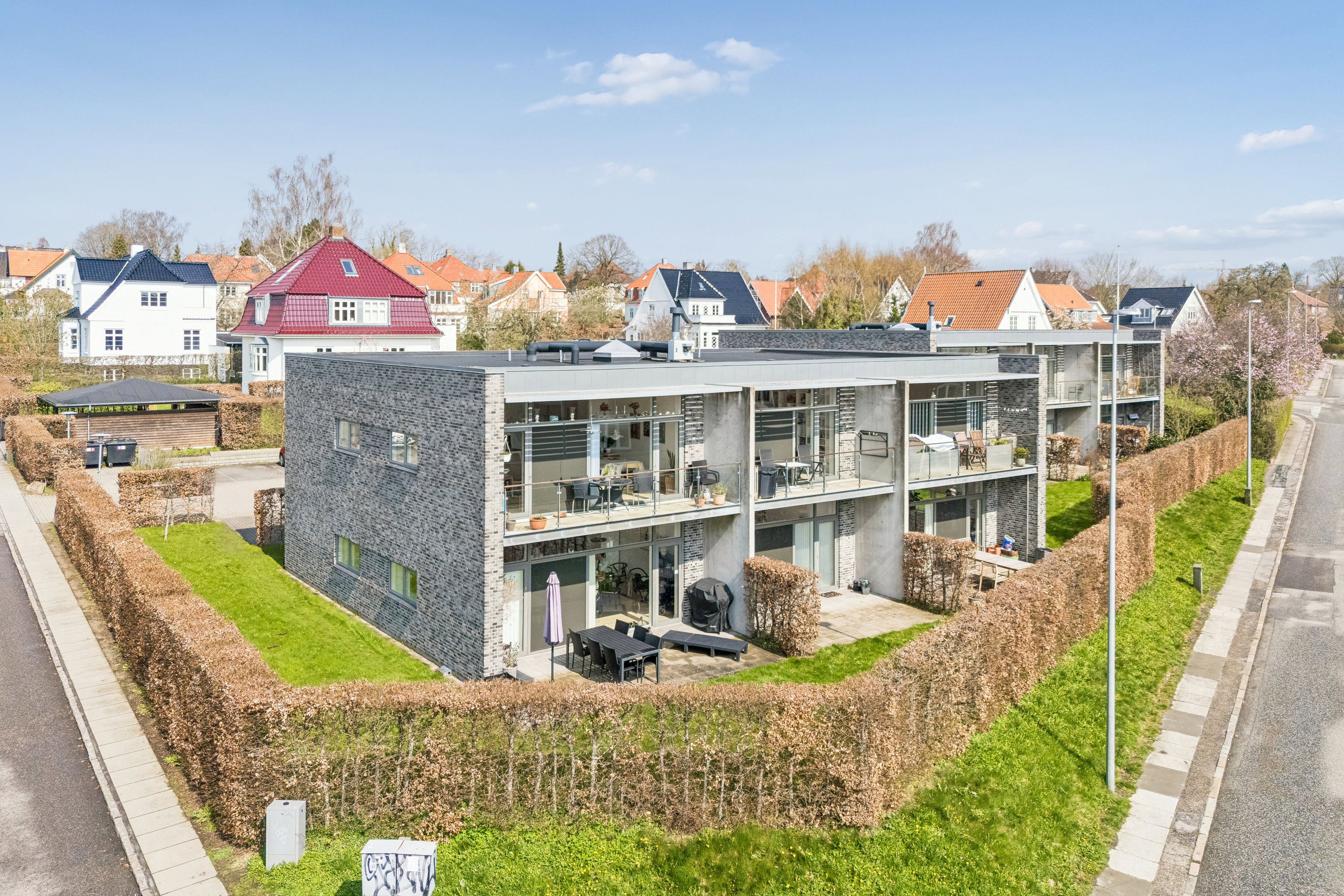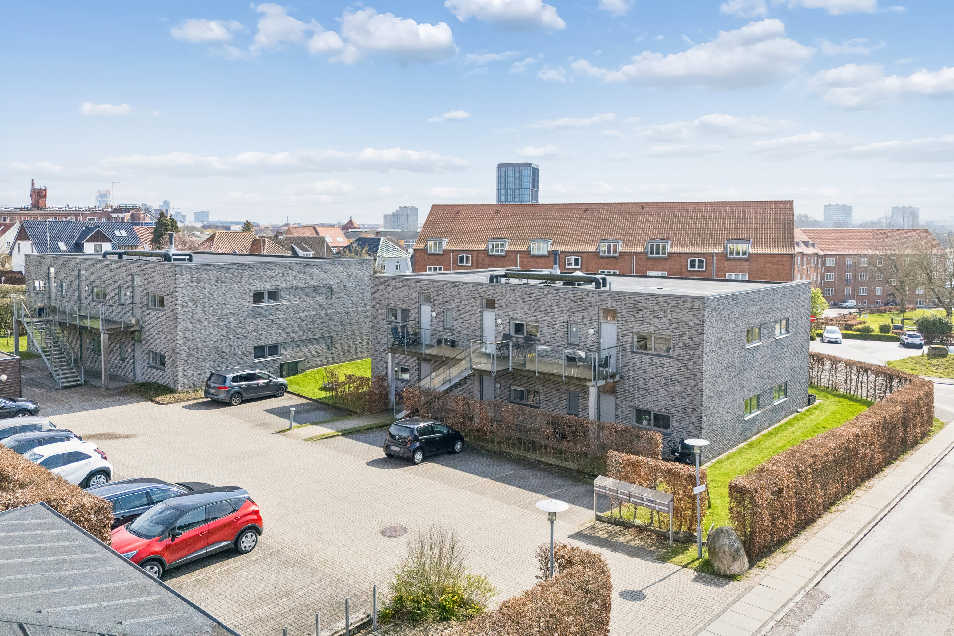 Beliggenheden er i absolut top med rolige omgivelser på Helgesvej i eftertragtede Åbyhøj – samtidig tæt på bygrænsen til Aarhus C og storbylivet. Her bor man trygt og privat for enden af ejendommen med direkte udgang til en stor, sydvestvendt altan. Til ejendommen hører et privat fælles parkeringsområde med plads til både beboere og gæster, hvor der desuden er etableret to ladestandere til elbil.
