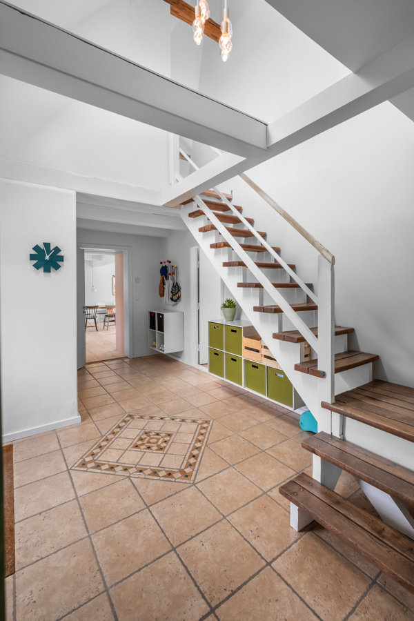 På førstesalen bliver du mødt af en lys og rummelig repos, der nemt kan indrettes som ekstra opholdsrum. Herudover er der tre gode soveværelser samt et badeværelse, som stod færdigrenoveret i 2018. Også her er der tænkt nøje over indretningen. Dertil kommer to hyggelige hems – den ene anvendes til opbevaring, mens den anden er indrettet som en lille oase med madras og tv, perfekt til børn eller afslapning.