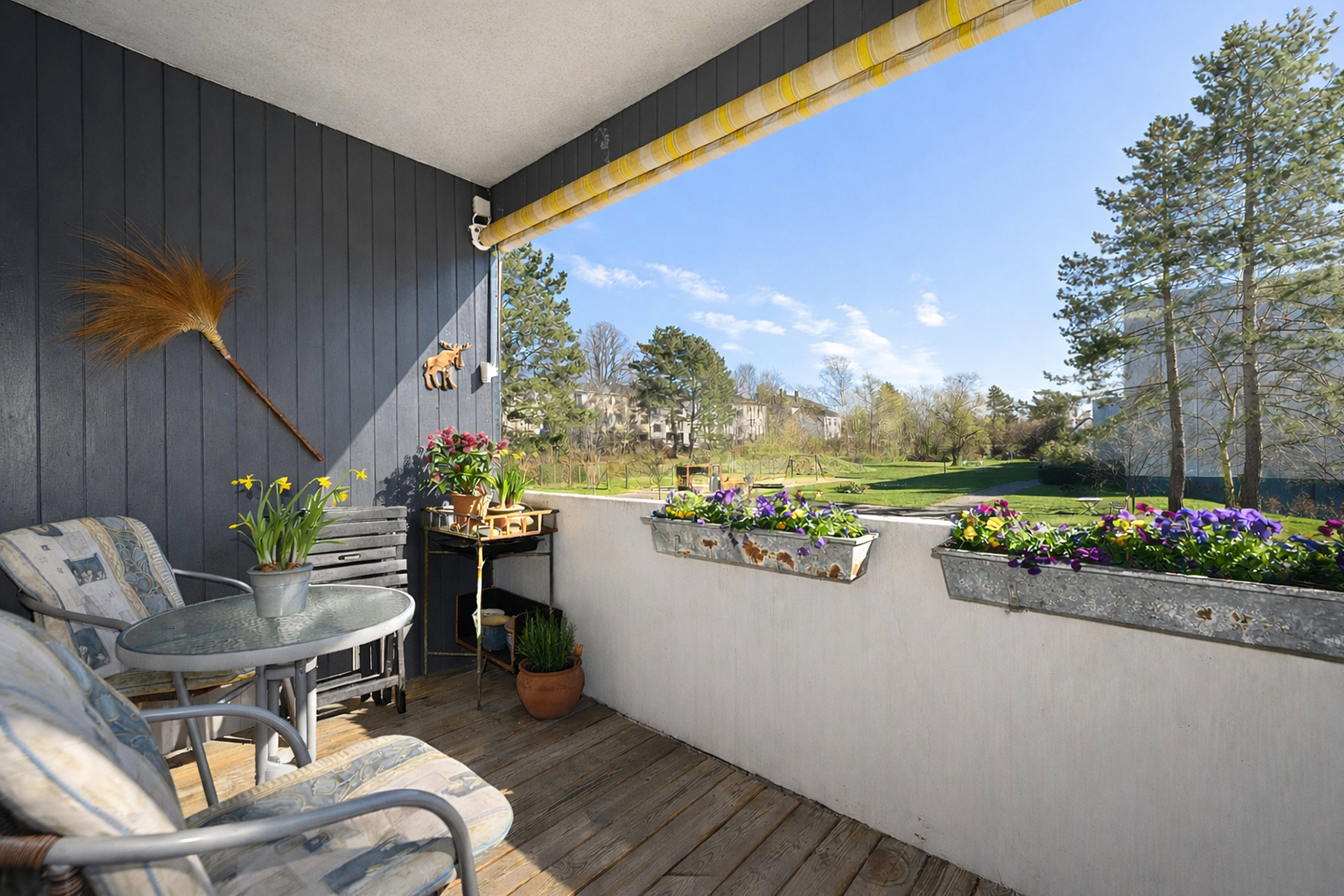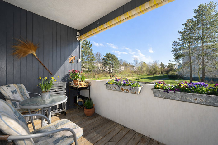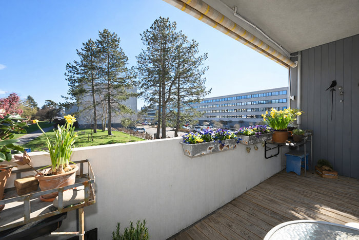 Lejligheden har en suveræn placering i bebyggelsen – helt tilbagetrukket i en eftertragtet blok, solrig og med altanen stik sydvendt. Den store, skønne altan rummer både plads til loungeområde, stemningsfylde blomsterkasser og mulighed for etablering af urtebede i "højden".