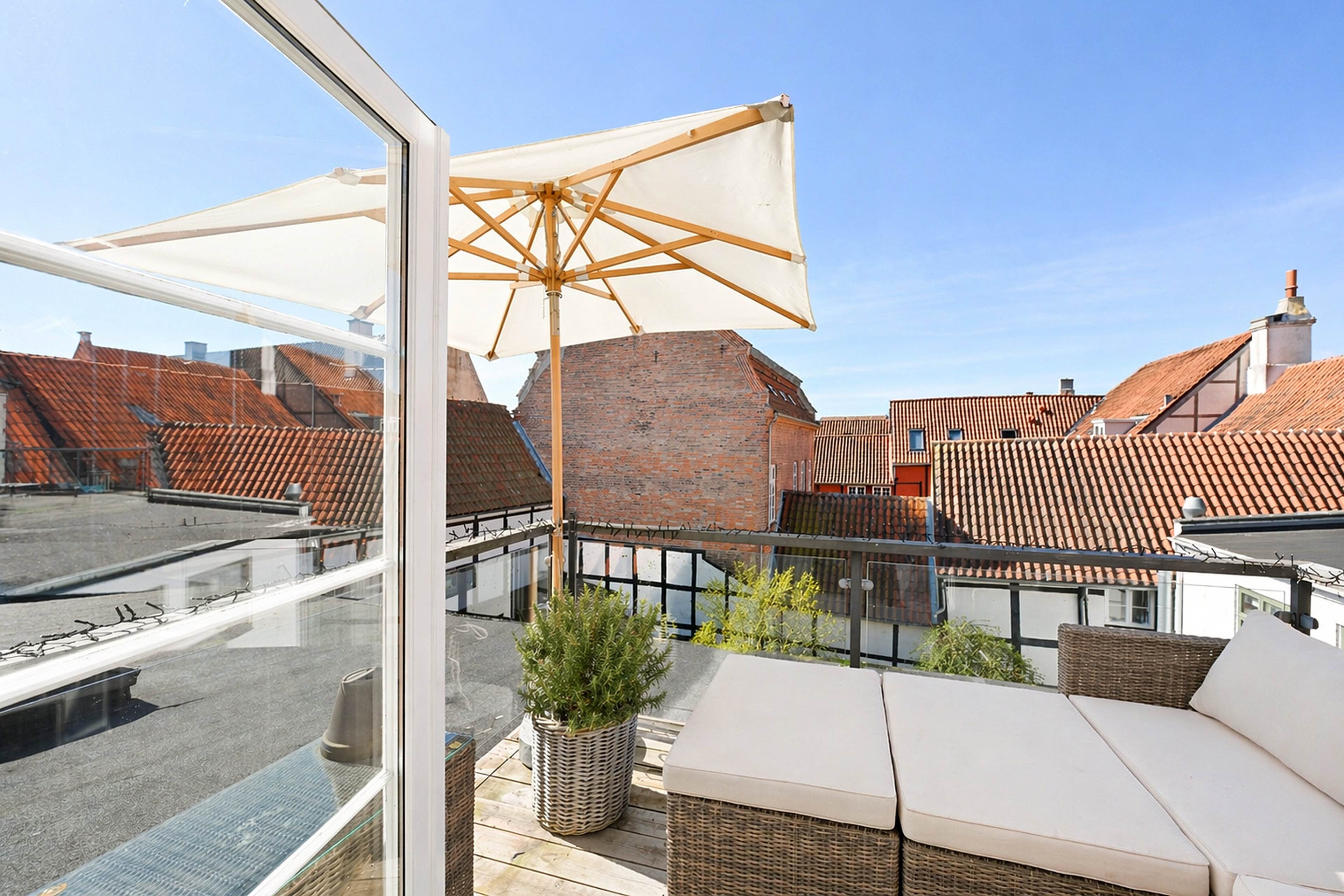 den store tagterrasse. Her får du en særlig følelse af luft og frihed – oplagt som master bedroom,