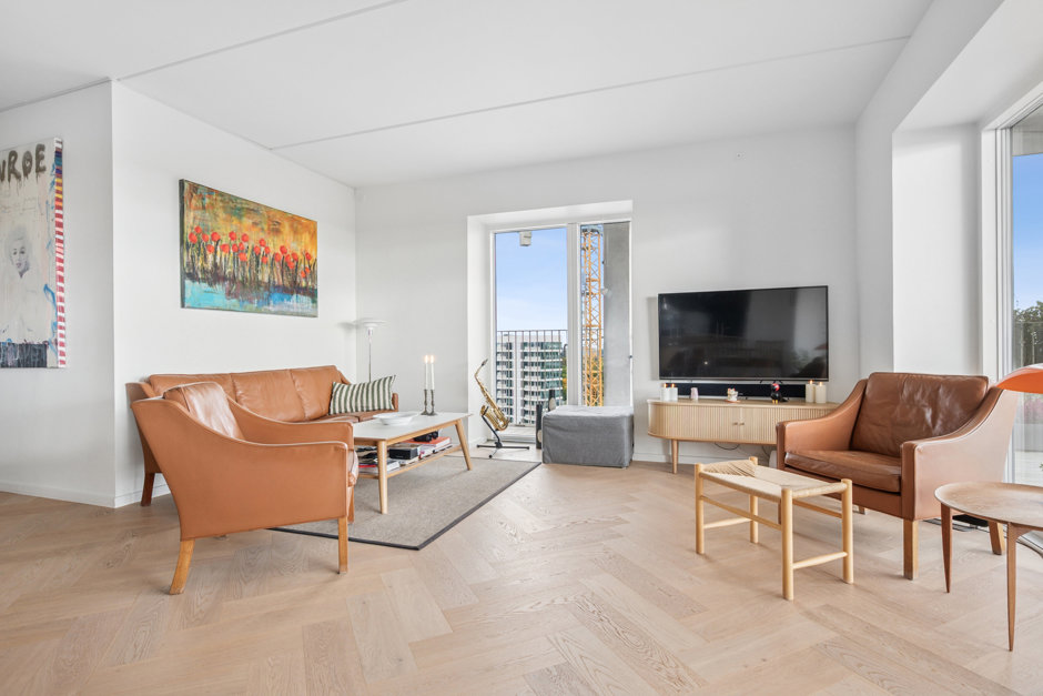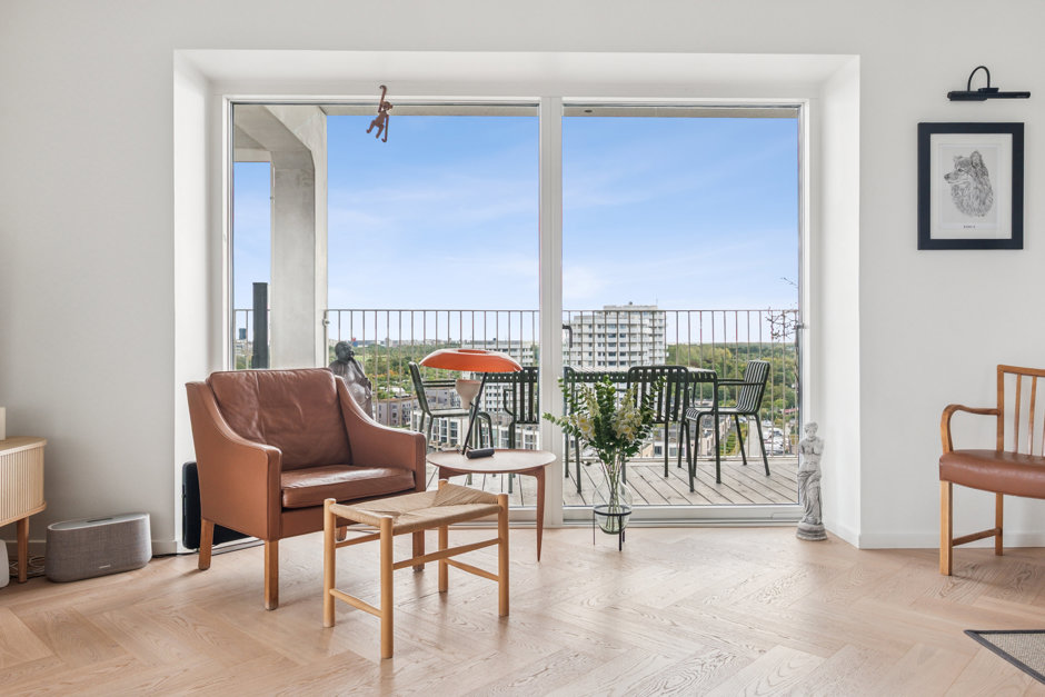 Jeres kommende hjem ligger på 11. etage, og allerede fra første skridt indenfor bliver I betaget af