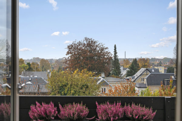 Ønsker du at bo midt i smørhullet i Charlottenlund, men samtidig have en grøn udsigt og udsigt over kvarterets hustage - så er denne lejlighed helt perfekt.