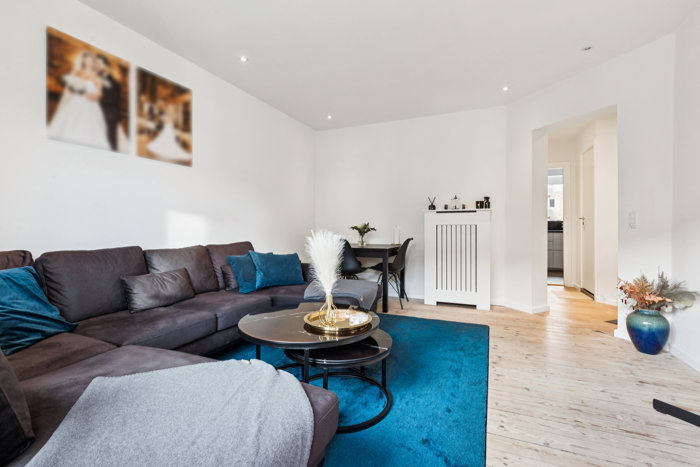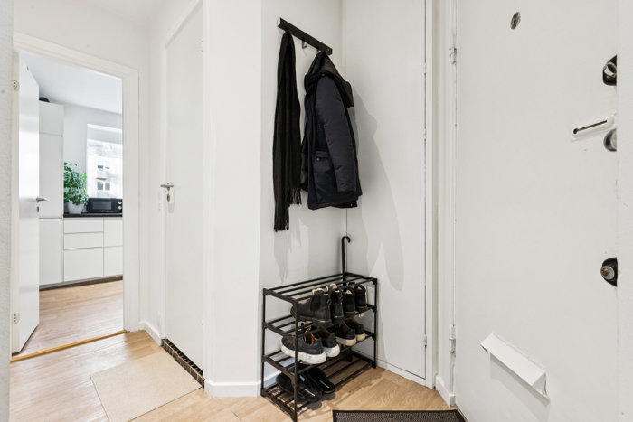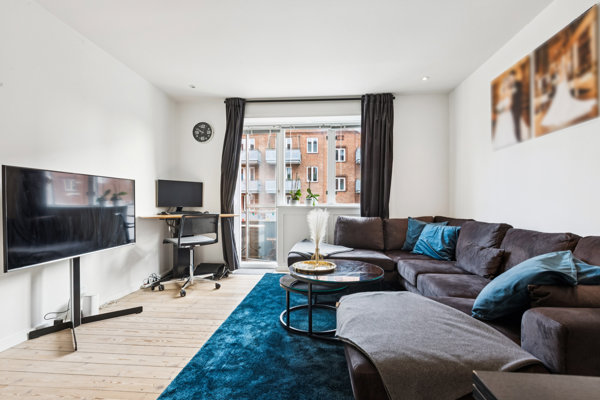 Selve boligen byder på 52 m2 med en perfekt planløsning. Turen starter i en entré med indbygget skabsplads, og herfra kan I tilgå alle øvrige rum, som tæller køkken, bad, stue og soveværelse. Badeværelset præsenterer sig flot med sorte mosaikker og matchende armatur; det stilrene køkken er udstyret med alt fra gaskomfur til opvaskemaskine; den dejlige stue prydes af plankegulv og fuldendes af en altandør – og det samme kan siges om soveværelset, som desuden vender ud mod rolige rammer i gården.