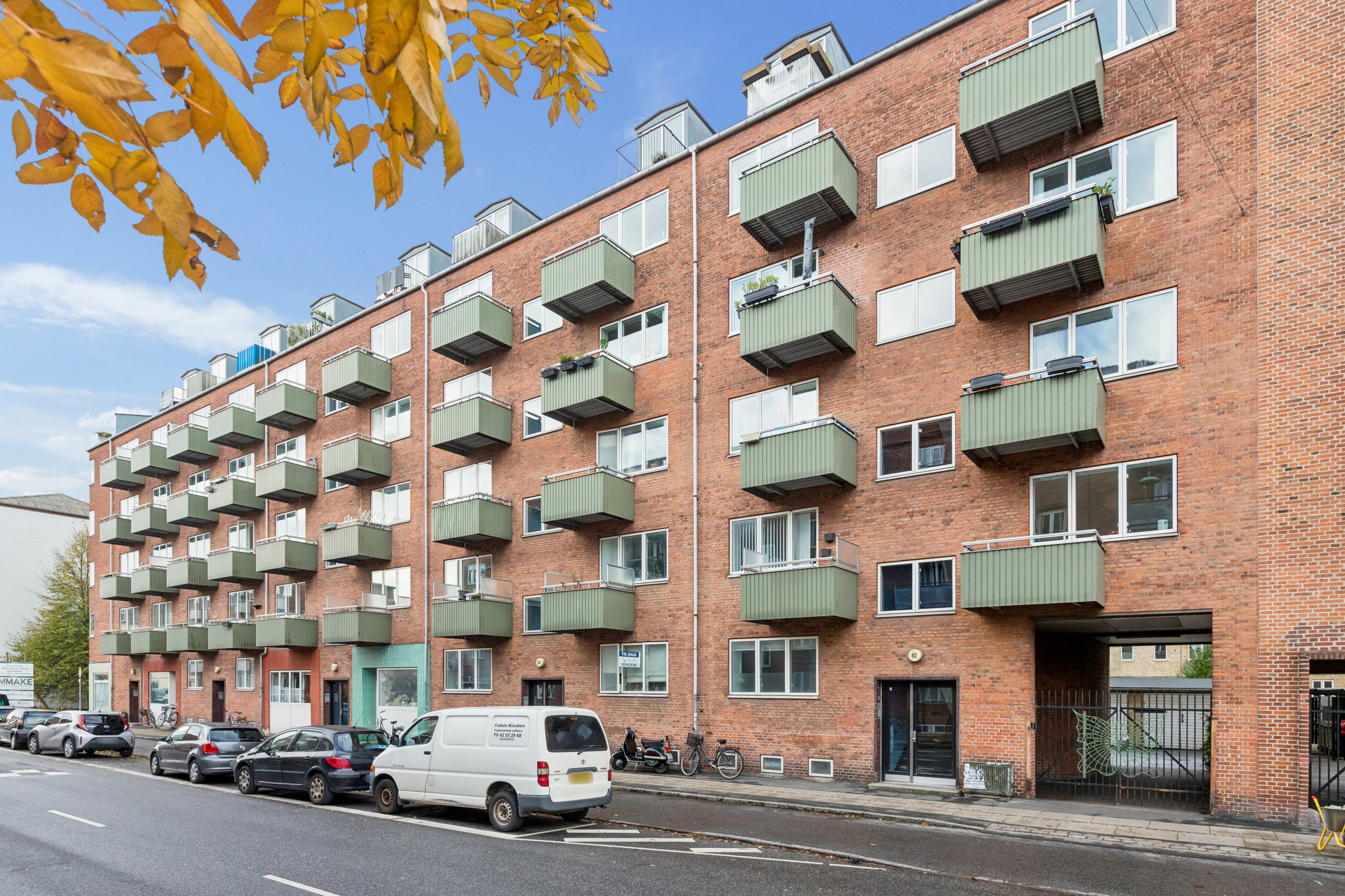 Det er klassisk 30’er-arkitektur, der byder jer velkommen på adressen, hvor ejendommen står med en rødstensfacade, grønne altaner, kviste på taget og brede vinduespartier, der fylder lejlighederne med dagslys. Jeres lejlighed ligger perfekt på 2. sal, hvor I får fin afstand til trafik og forbipasserende i gadeplan, men uden at have for mange trapper til hoveddøren, når I vender hjem med dagens indkøb. Heroppe venter selvfølgelig lejligheden, men også de to altaner, som inviterer på hhv. morgensol og kig til nabolaget samt aftensol og udsigt over den store, grønne gård.