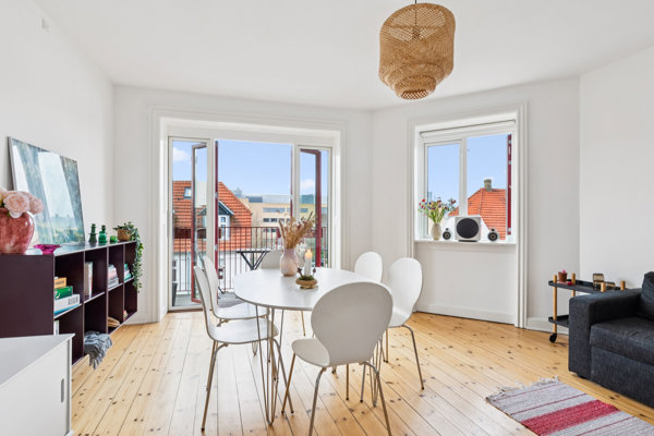 Hjørnelejlighed med charme og solrig altan