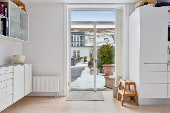 ét plan træder man direkte ud i en privat og fredelig oase sydvestvendt tagterrasse.