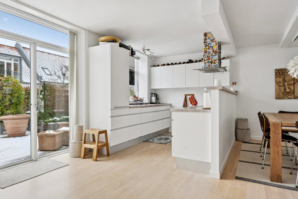 forbindelse til den hyggelige stue med god plads til både spisebord og sofaområde.