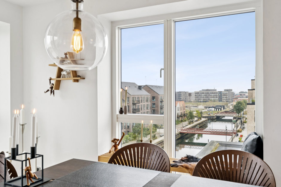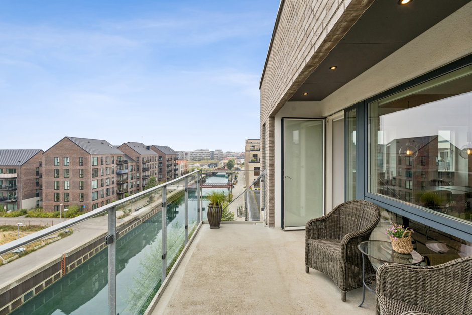 Fra stuen er der udgang til den rummelige altan, som bliver et oplagt sted til både afslapning og hyggelige stunder. Her kan du følge livet på kanalen, nyde havudsigten og mærke roen, selvom du befinder dig tæt på byens puls.
