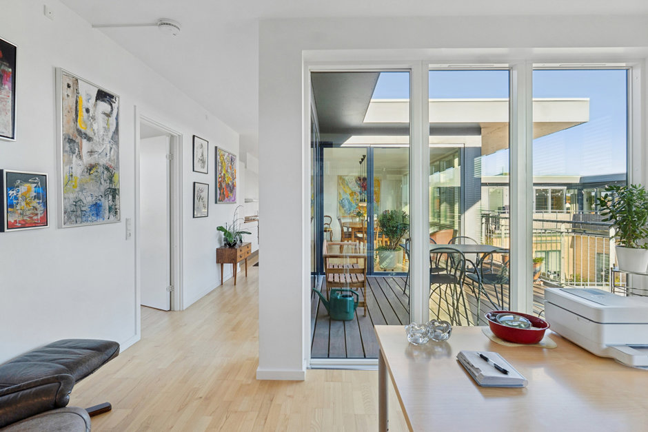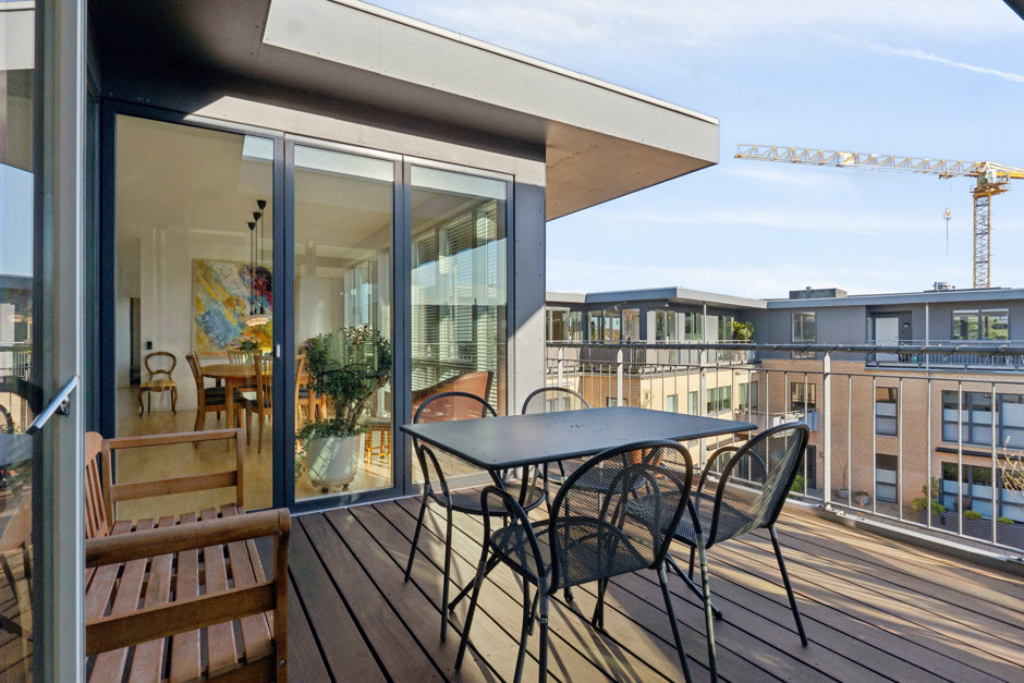 Altanerne på begge sider af lejligheden har en fremragende udsigt og masser af solskin, og heroppe på tredje sal kan I sidde ganske ugeneret og nyde udendørslivet i fulde drag.