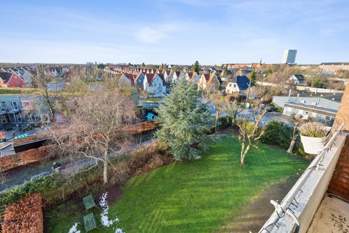 I flytter ind i en klassisk rødstensejendom fra 1959, og her bliver I en del af en velfungerende ejerforening, hvor I får glæde af bl.a. et fælles vaskeri, og de gode parkeringsmuligheder for foden af bygningen – og takket være elevatoren er det herfra nemt og bekvemt at sætte kurs mod 4. sal, hvor lejligheden ligger perfekt placeret. Heroppe er lysindfaldet ekstra flot; der er lang afstand til gaden og dermed masser af privatliv; og I får selskab af den hyggeligste udsigt, der strækker sig over villavejene i kvarteret Lyset.
