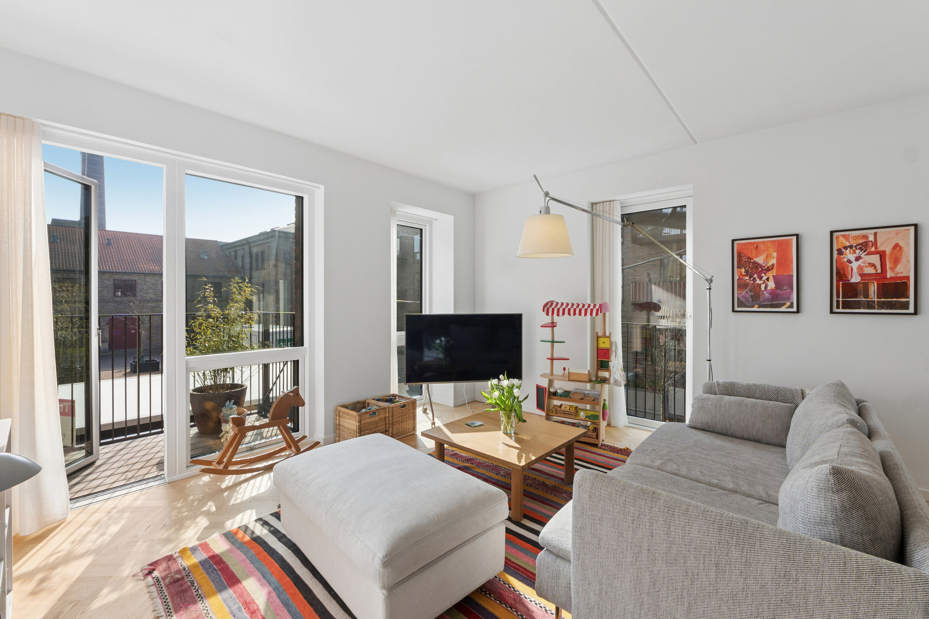Fra opholdsrummet er der adgang til to skønne altaner, der vender mod syd og vest. Her kan du nyde solen det meste af dagen – perfekt til både morgenkaffen og lange sommeraftener i rolige omgivelser.