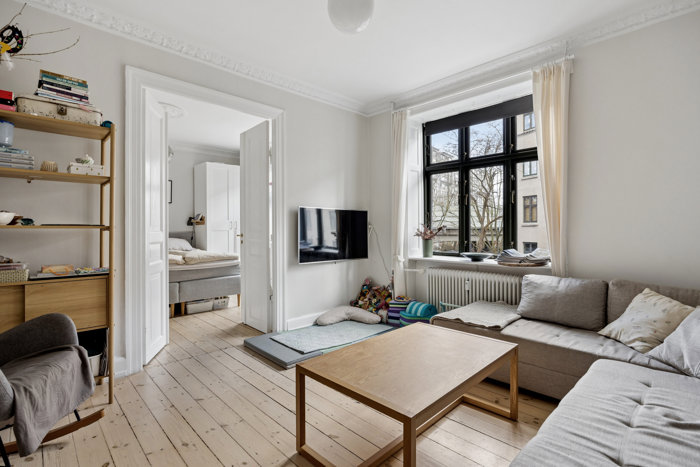 Lejlighed på blind vej mellem Frederiksberg og Nørrebro tæt på Bispebuens mange aktiviteter i form af saunagus, loppemarked og meget mere. Her er også for nyligt åbnet en naturlegeplads - lige for enden af Munkensvej. Her kommer du således helt tæt på alt, hvad både det pæne Frederiksberg og det stemningsfulde Nørrebro har at byde på. Her er der god plads til såvel parret som de to venner eller den lille børnefamilie, som også får lov til at nyde godt af et naturligt lys og en vestvendt altan.