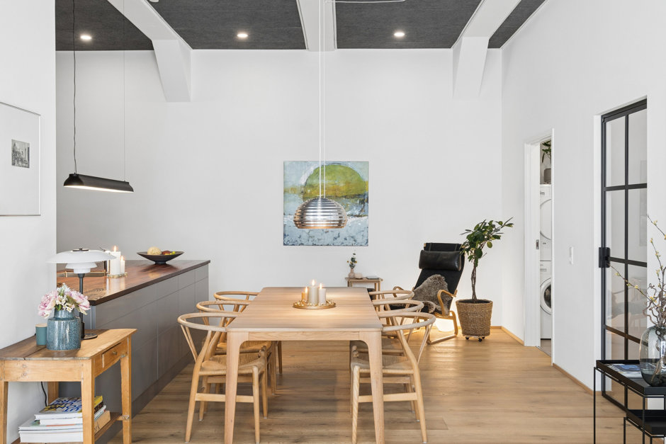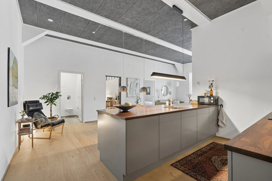 Boligens naturlige samlingspunkt er det fantastiske åbne køkkenalrum – et rum skabt til at leve i. Her strømmer lyset ind, og rammerne er sat for de mange gode aftener med venner og familie, hvor samtalerne flyder, og livet leves.