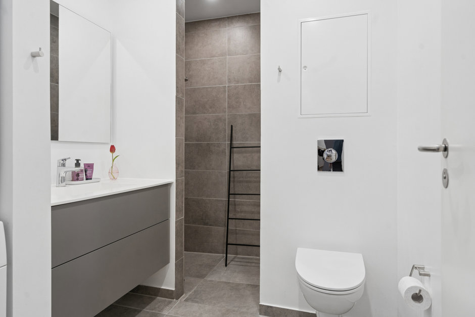 Boligen fremstår lys, indbydende og gennemtænkt med en planløsning, der udnytter hver eneste kvadratmeter optimalt. Her er gulvvarme i alle rum, hvilket skaber en gennemgående komfort og en eksklusiv fornemmelse i hverdagen. Planløsningen giver mulighed for hele tre reelle værelser, hvilket gør boligen ideel til både familien, parret eller dem, der ønsker fleksibilitet i indretningen.