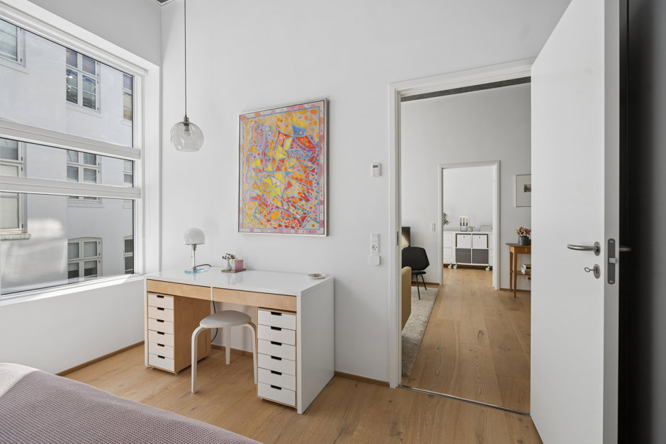 Men det, der for alvor gør denne bolig unik, er kontrasten mellem roen i baghuset og livet lige udenfor. For så snart du træder ud gennem de store porte, står København klar med alt, hvad hjertet begærer. Torvehallerne ligger som din nærmeste nabo og frister med delikatesser fra hele verden, mens Ørstedsparken inviterer til afslappende gåture, løbeture eller en stille stund ved vandet.