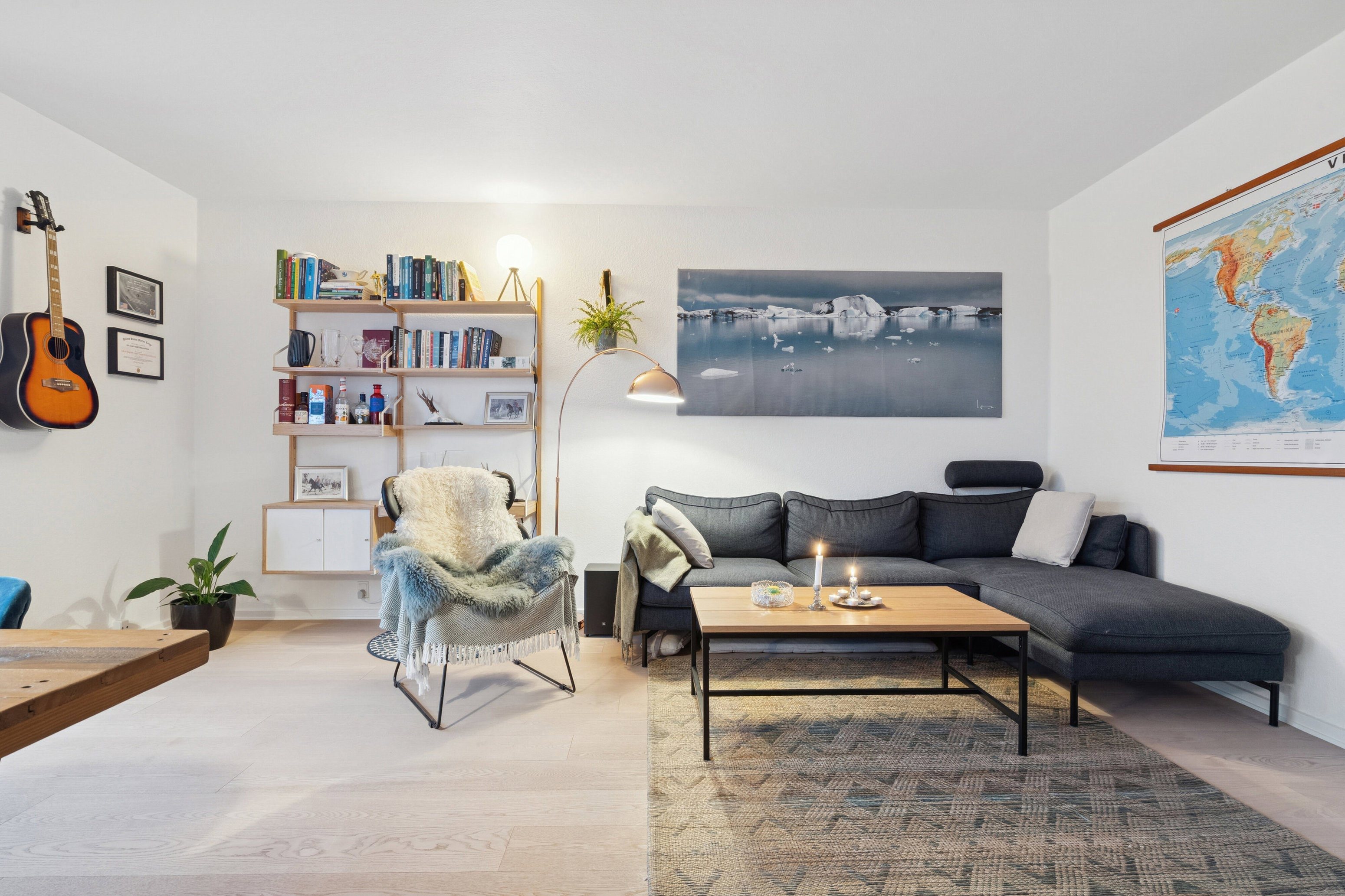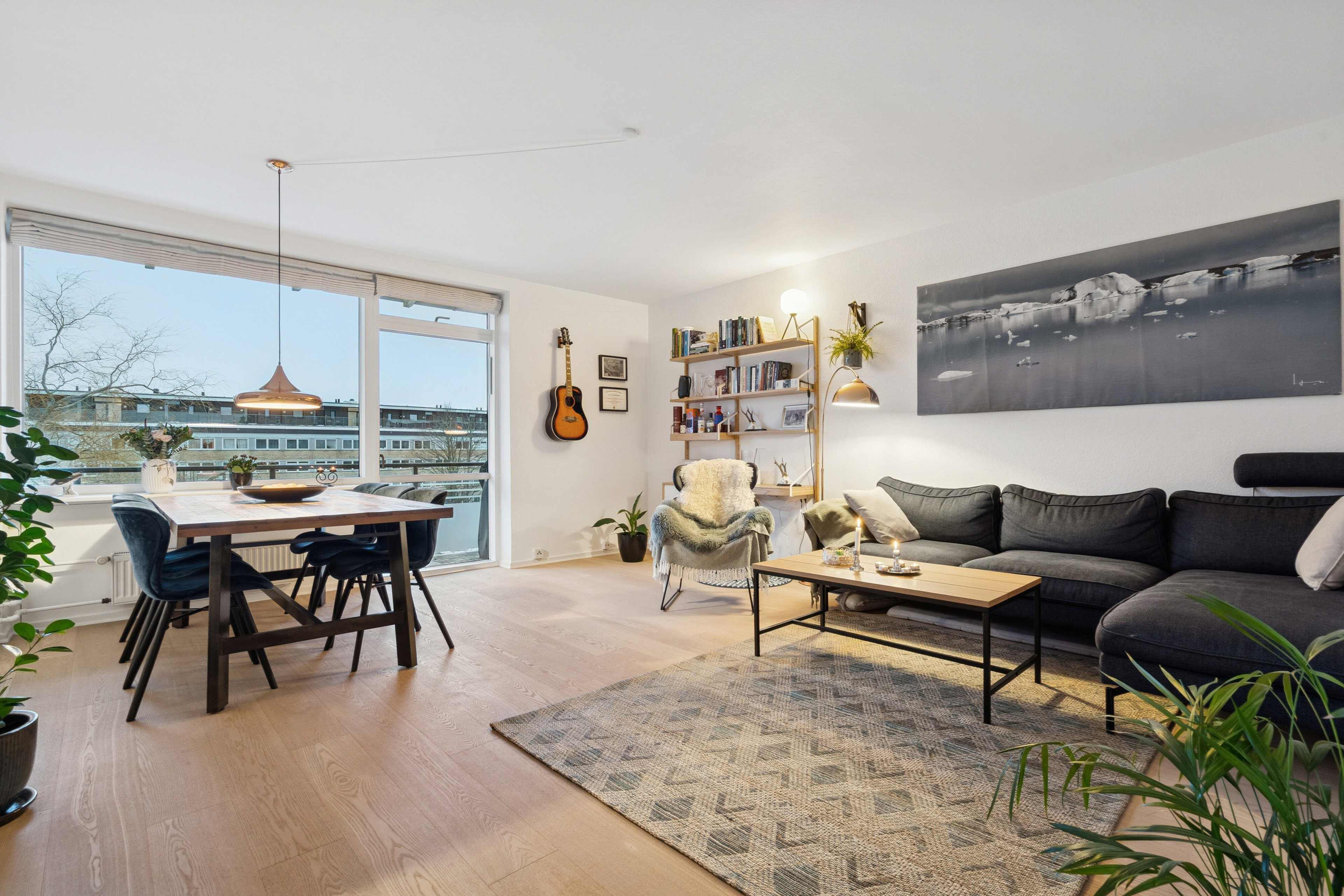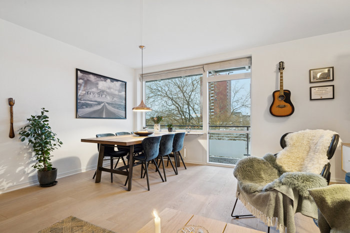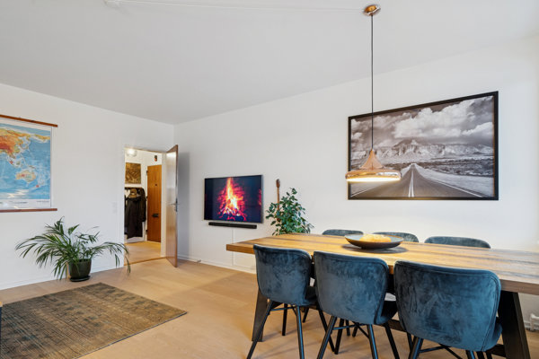 Overalt fremstår lejligheden lys og indbydende med en god planløsning, der sikrer en optimal udnyttelse af kvadratmeterne og en behagelig atmosfære.