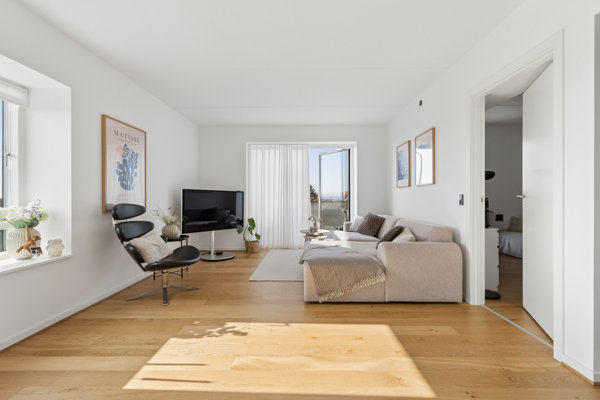 Boligen henvender sig til dig, der ønsker en vedligeholdelsesfri bolig, hvor der er tænkt på både komfort og funktionalitet. I opgangen findes elevator, hvilket gør lejligheden velegnet for alle aldersgrupper. Lejligheden rummer en velindrettet planløsning med to gode værelser, et lyst og åbent køkken-alrum i forbindelse med stuen, badeværelse med gulvvarme, samt både depotrum og teknikrum, der giver god opbevaringsplads. De store vinduespartier sikrer et dejligt lysindfald, som skaber en lys og indbydende atmosfære i hele boligen.