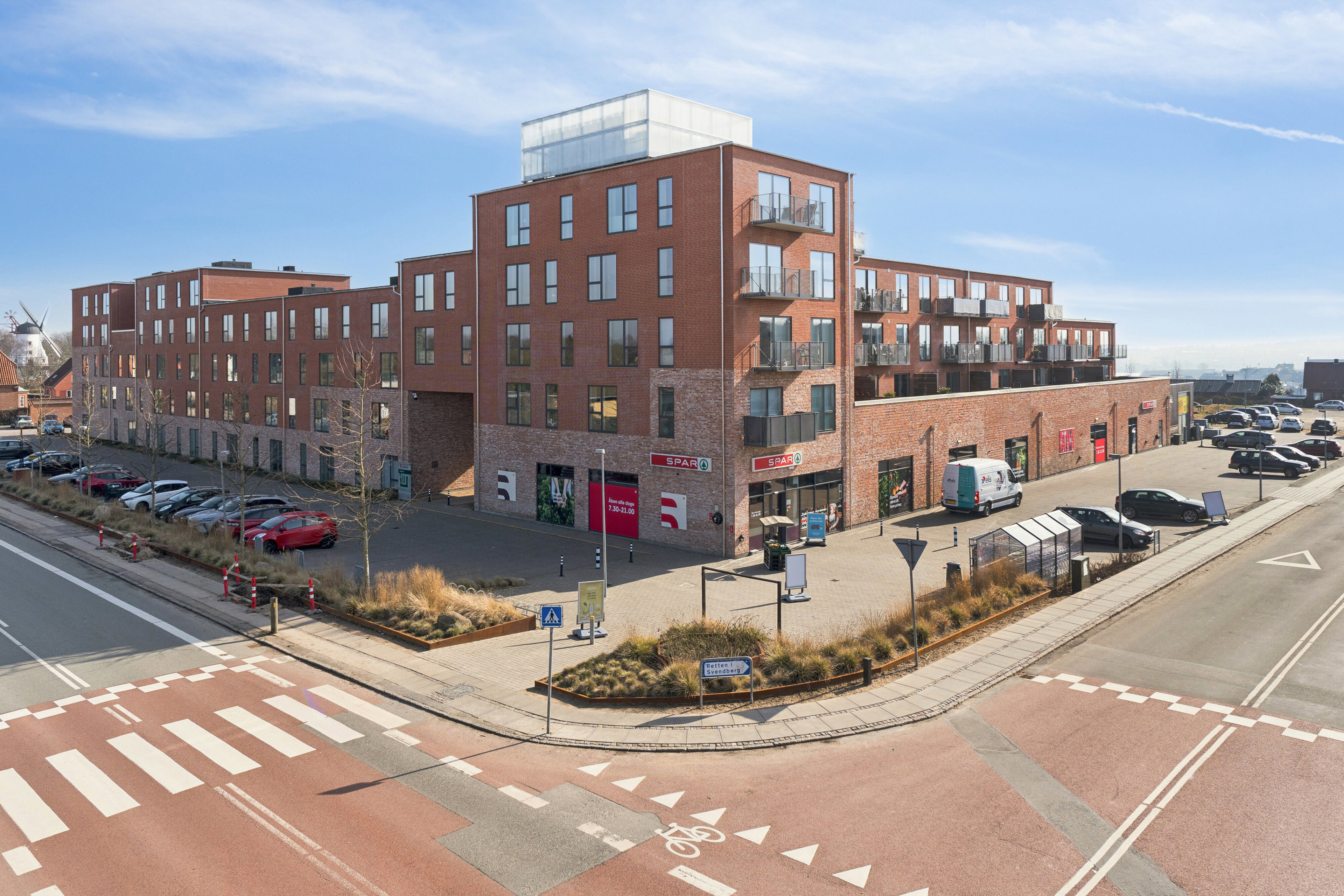 Beliggenheden er både central og praktisk i hverdagen. SPAR ligger lige under lejligheden, og Netto findes lige overfor, mens Svendborg centrum nås på under 5 minutter på cykel. Samtidig er alle hverdagens fornødenheder inden for kort afstand.
