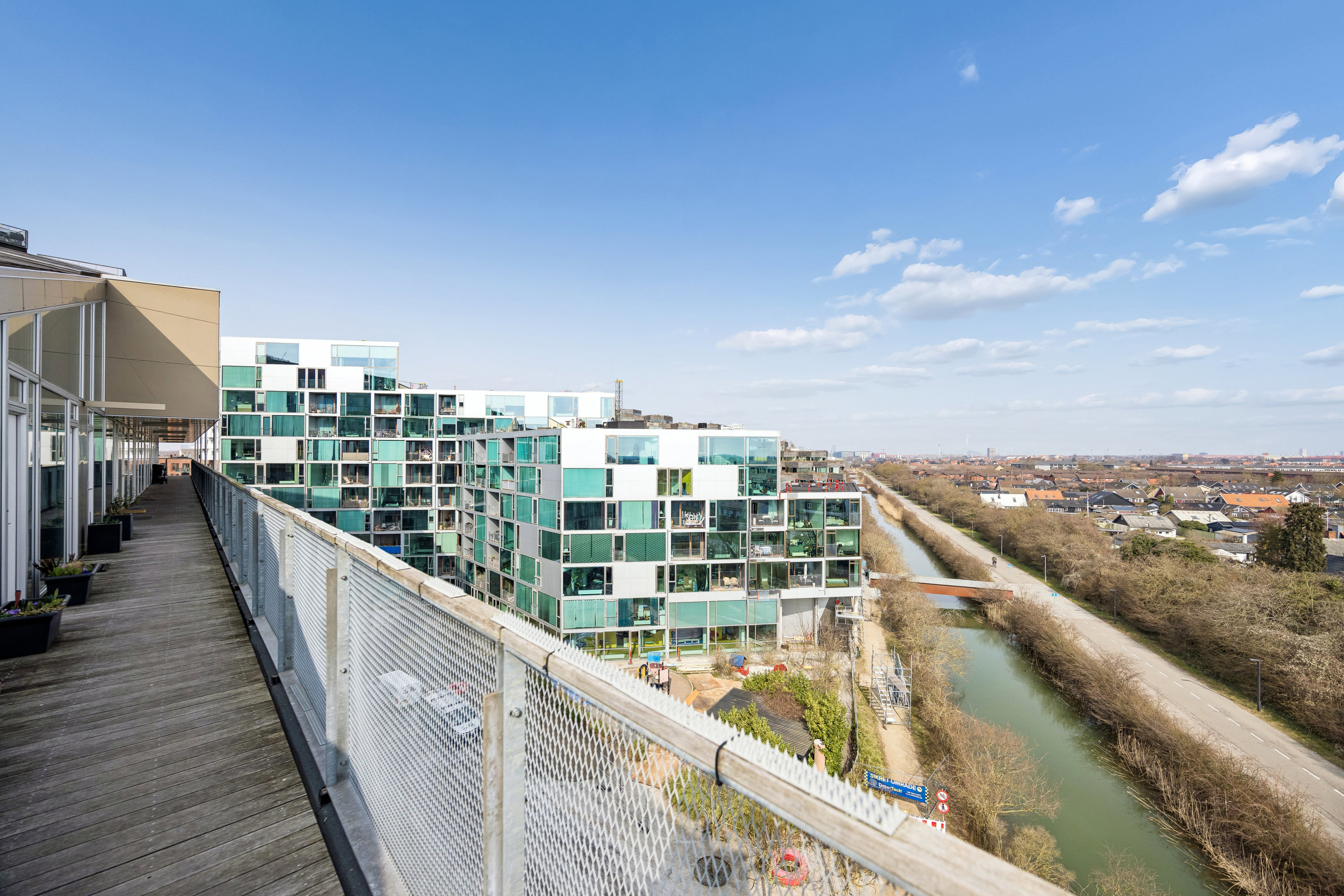 Lejligheden ligger i den moderne ejendom V-huset fra 2005, som er arkitektonisk udformet med fokus på lys, luft og udsyn. Netop dét kommer virkelig til sin ret her, for fra såvel bolig som den trekantede altan får I et fænomenalt panorama over Ørestad og Prismehaven mod syd. Beliggenheden på 5. sal giver jer tilmed en dejlig fornemmelse af ro og masser af himmel over jer, mens elevatoren sørger for nem og bekvem adgang i hverdagen.