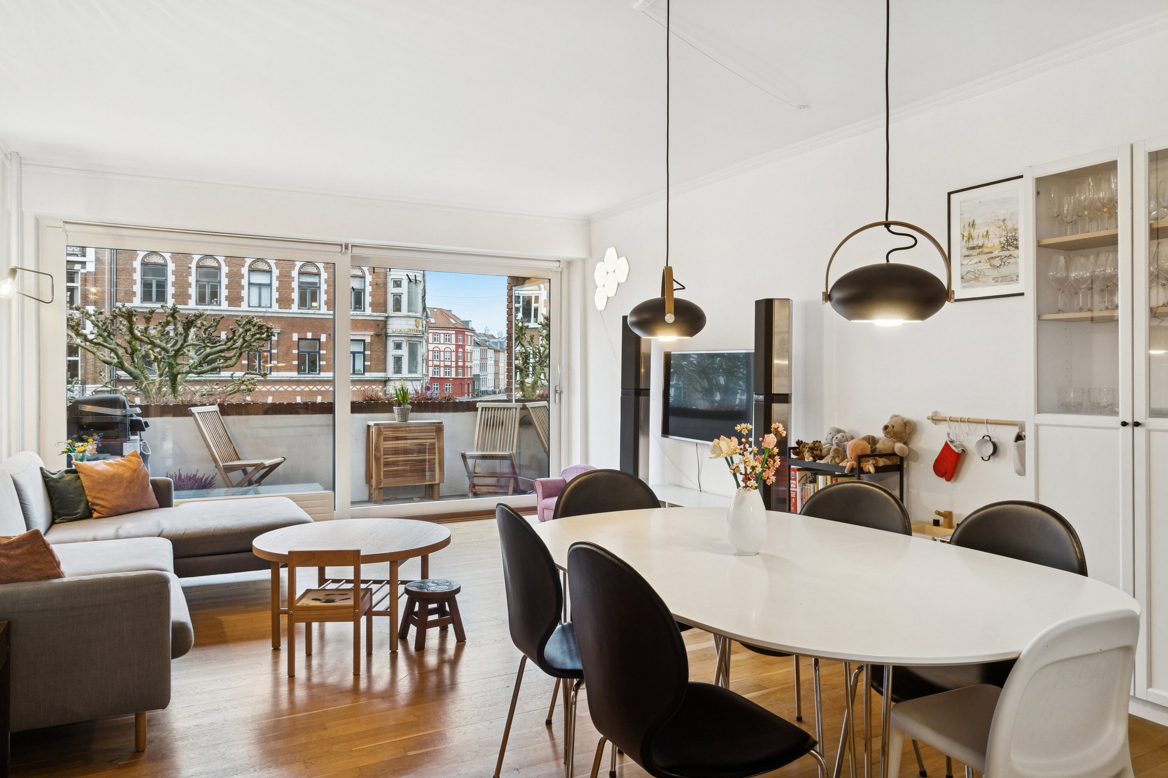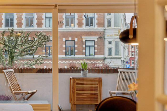 Fra stuen er der direkte udgang til en skøn altan, hvor der er plads til cafébord og stole – perfekt til morgenkaffen, en stille stund i solen eller hyggelige aftener med udsigt til kvarterets smukke ejendomme.