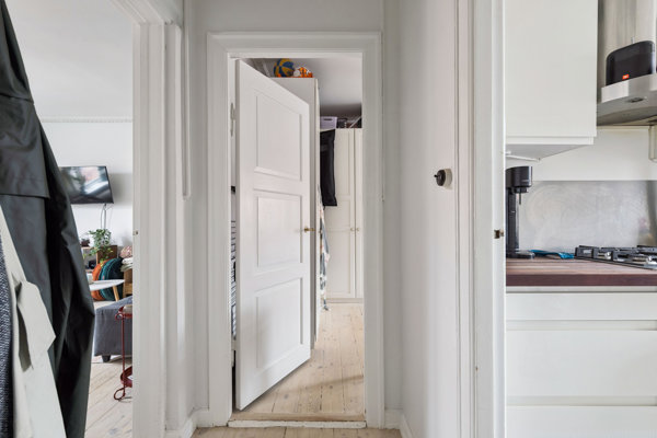 Der er potentiale for, at to venner kan bo under samme tag, ligesom parret eller solisten vil passe perfekt ind blandt de 59 kvadratmeter. Boligoplevelsen begynder i en fordelingsentré, hvorfra samtlige rum kan tilgås. Værelset vender roligt ind mod gården, og i stuen kan du indrette dig med både bløde sofamøbler og spisebord. I køkkenet er der plads til vaskefaciliteter, og planløsningen byder ligeledes på et badeværelse. Derudover pryder fin stuk her og der og præger lejligheden med lidt ekstra charme.