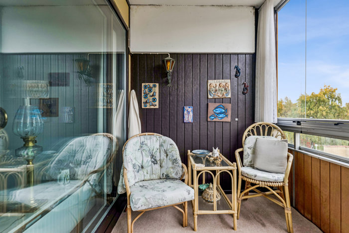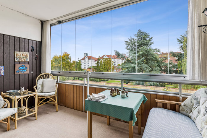 Lejligheden er lys og rummelig med både kvaliteter og potentiale. Her mødes byens puls med grønne, fredelige omgivelser, og stemningen er præget af en sjælden ro – noget du kan nyde ved ejendommens pool, på den solrige altan eller blot ved at åbne vinduerne og lade den friske luft strømme ind.