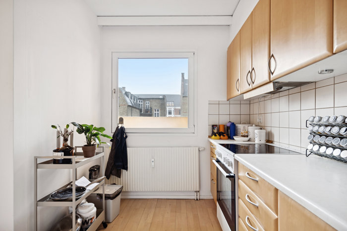 Du flytter ind i en klassisk 70’er-ejendom, hvor din lejlighed ligger perfekt placeret på 3. sal. Den høje placering betyder, at lejligheden fyldes af et dejligt lys, og samtidig bor du privat og ugeneret, for der er lang afstand til trafik og byliv i gadebilledet.