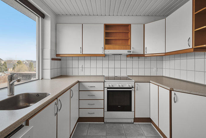 Derudover byder lejligheden på to gode værelser, som kan anvendes til soveværelse, kontor eller børneværelse alt efter behov. Køkkenet er funktionelt indrettet med god arbejdsplads, og badeværelset fremstår praktisk og let at vedligeholde.