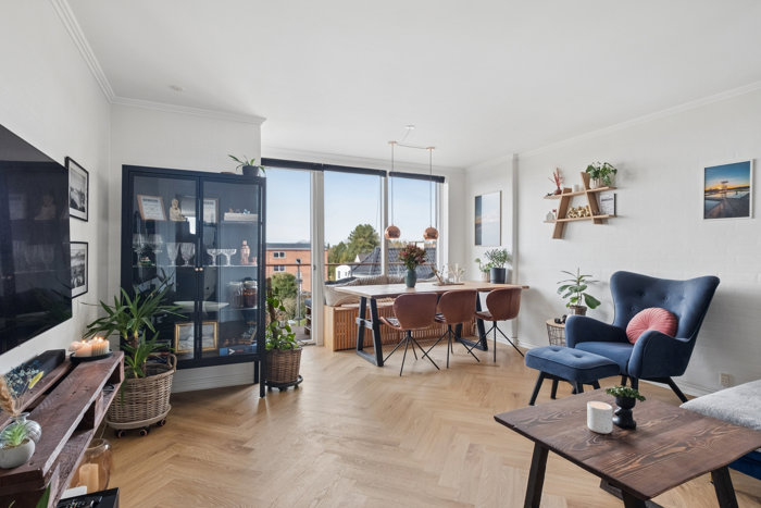Lys og indbydende ejerlejlighed med sildebensgulve, 2x altaner og fjordudsigt!