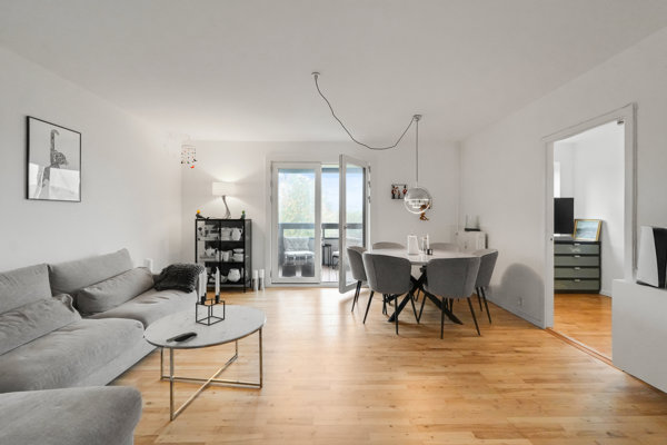 Med sin tilbagetrukne placering kunne denne lejlighed nærmest ikke ligge bedre i bebyggelsen. Her på Roskildevænget skal vi dermed se nærmere på en lys og velindrettet 2V’er – med gevinst. Mod syd får du nemlig en lukket altan, der byder sig til som en skøn bonus hele året rundt.