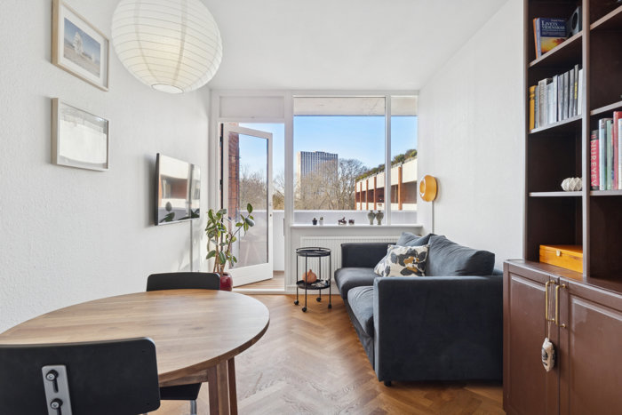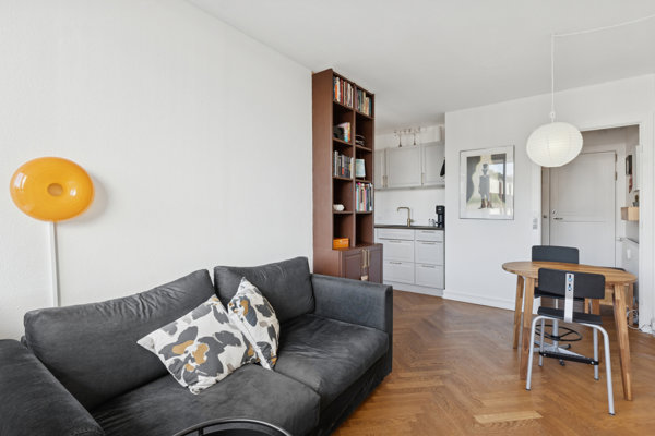 Lejligheden byder på 38 yderst veludnyttede kvadratmeter, hvor hver eneste detalje er gennemtænkt og
