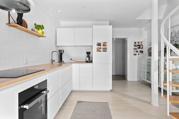 Stor klinkebelagt entré med god plads til overtøj og sko. Herfra adgang til flot badeværelse, der også er moderniseret fra ca. 4 år siden, hvor I har vask, toilet og stor bruseniche. Endvidere i stueetagen er det store og skønne køkken-/alrum med egen skjult vaskemaskine, flot lyst køkken og gode hårde hvidevarer. I lækkert indtryk med plads til såvel oplagt spiseafdeling som til skrivebords-/hyggeafdeling. Fra køkken-/alrummet er der direkte udgang til vestvendt terrassestykke i private omgivelser og dejlig fælleshave - ideelt til hyggelige grillstunder med venner og familie. Solen kan nydes fra morgen til aften på terrassen samt på de fælles grønne områder i foreningen.