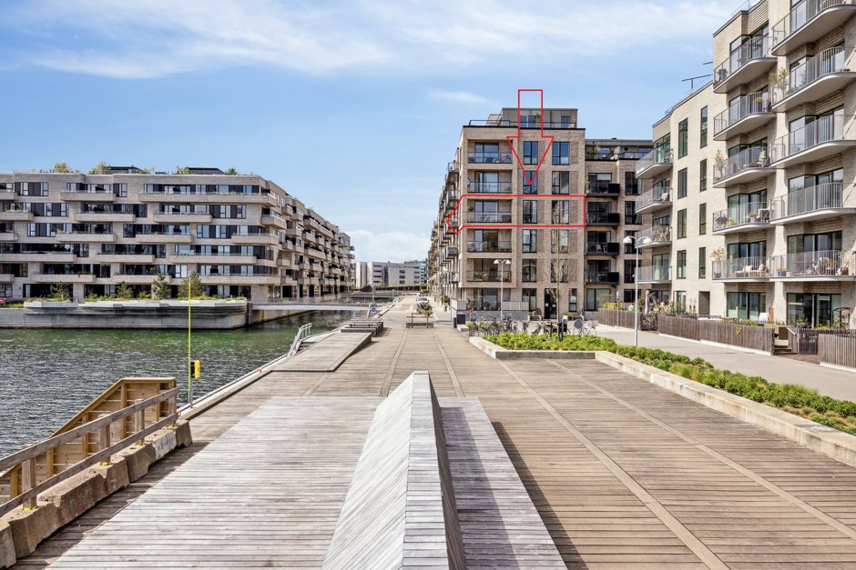CPH Porthouse fra 2017, som er tegnet af C.F. Møller, er fra start til slut et ideelt billede på, hvad Nordhavns arkitektur har at byde på. De lyse murstensfacader med smukke, håndlavede detaljer står i skarp kontrast til de mørke altaner og vinduesrammer, og der er naturligvis store vinduespartier til at give en ekstra dimension. Her er fælles tagterrasse, cykelparkering, samt legeplads i gården.