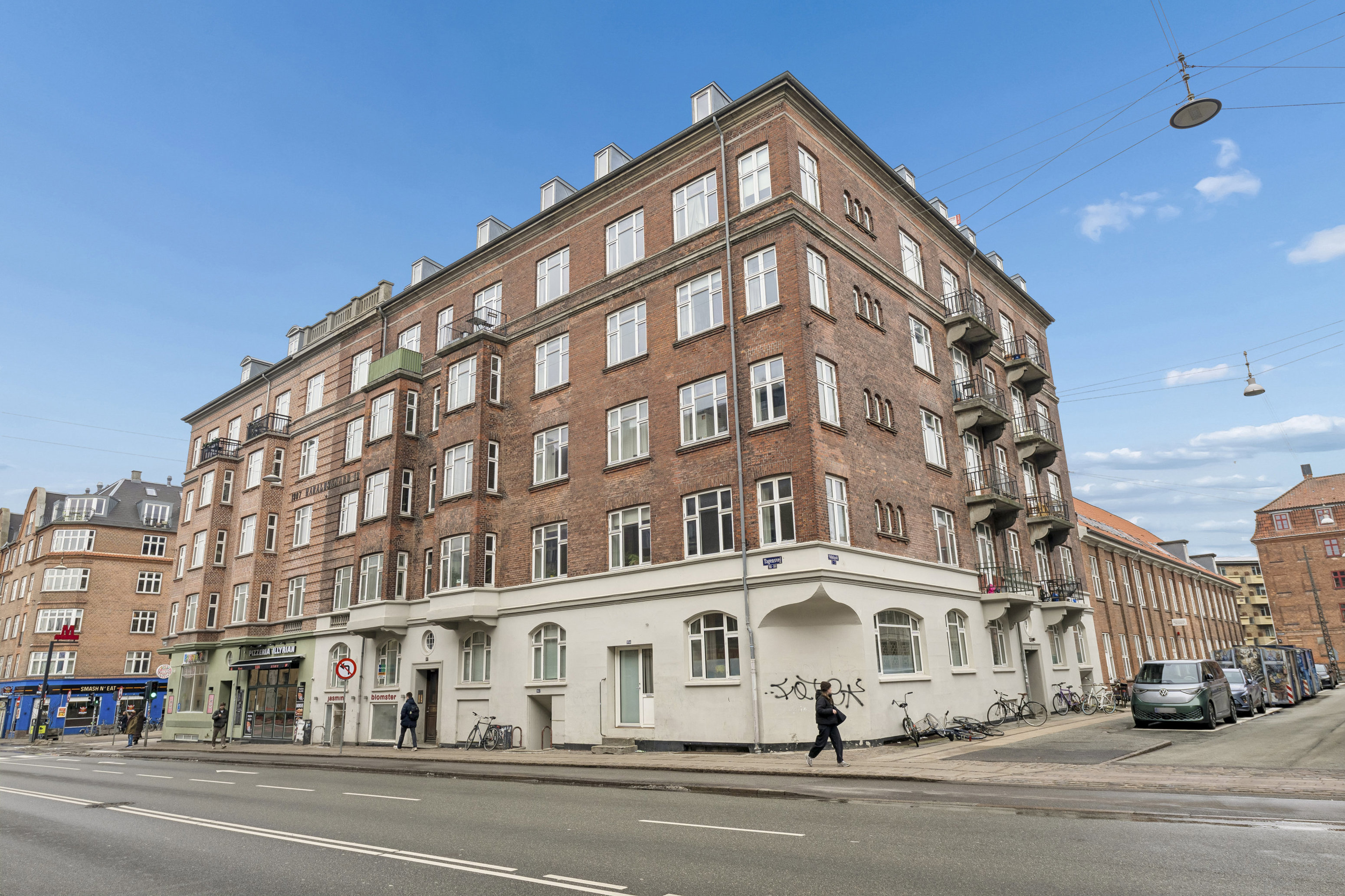 Alt det tilsættes en eftertragtet adresse, der placerer dig lige dér, hvor det hele sker – midt i Det Mytologiske Kvarter på Nørrebro. Du har bylivet for dine fødder, og når du træder ud på Tagensvej, bliver du mødt af indkøb over gaden samt butikker, lækker takeaway og meget andet. Samtidig bor du bogstavelig talt få skridt fra Skjolds Plads, hvor du kan lade dig friste af bageren og de populære spisesteder, og hvor du kan hoppe på metroen, når du skal videre ud i byen.