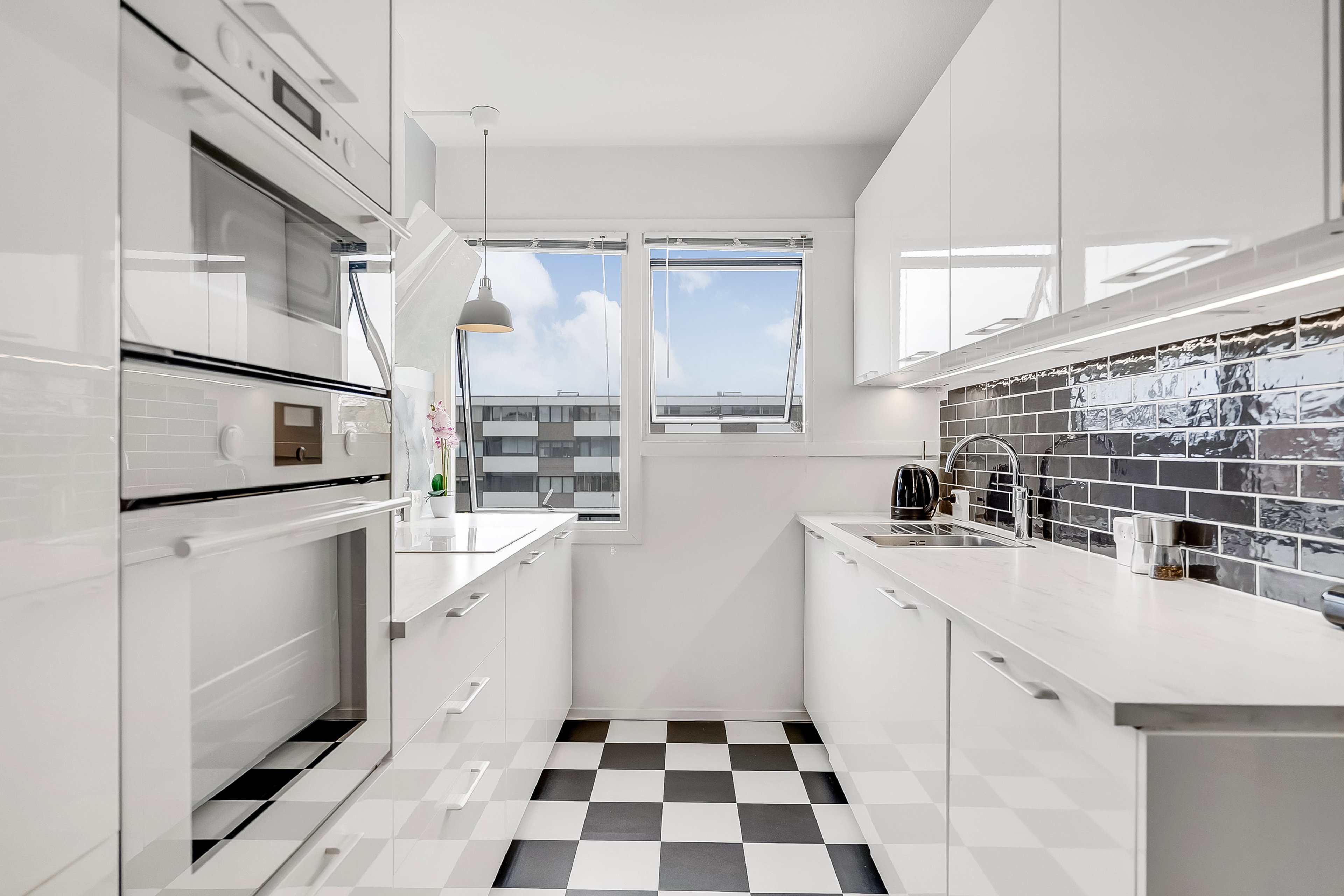 Lejligheden rummer hele 85 m² og fremstår lys og moderne med en dejlig atmosfære. Det nyere, lyse køkken er både stilrent og funktionelt, med god skabsplads og integrerede hvidevarer – perfekt til både hverdagens madlavning og hyggelige middage med venner og familie. Køkkenet ligger i åben forbindelse med det store alrum, som giver et naturligt samlingspunkt i boligen og god plads til både spise- og sofaafdeling.