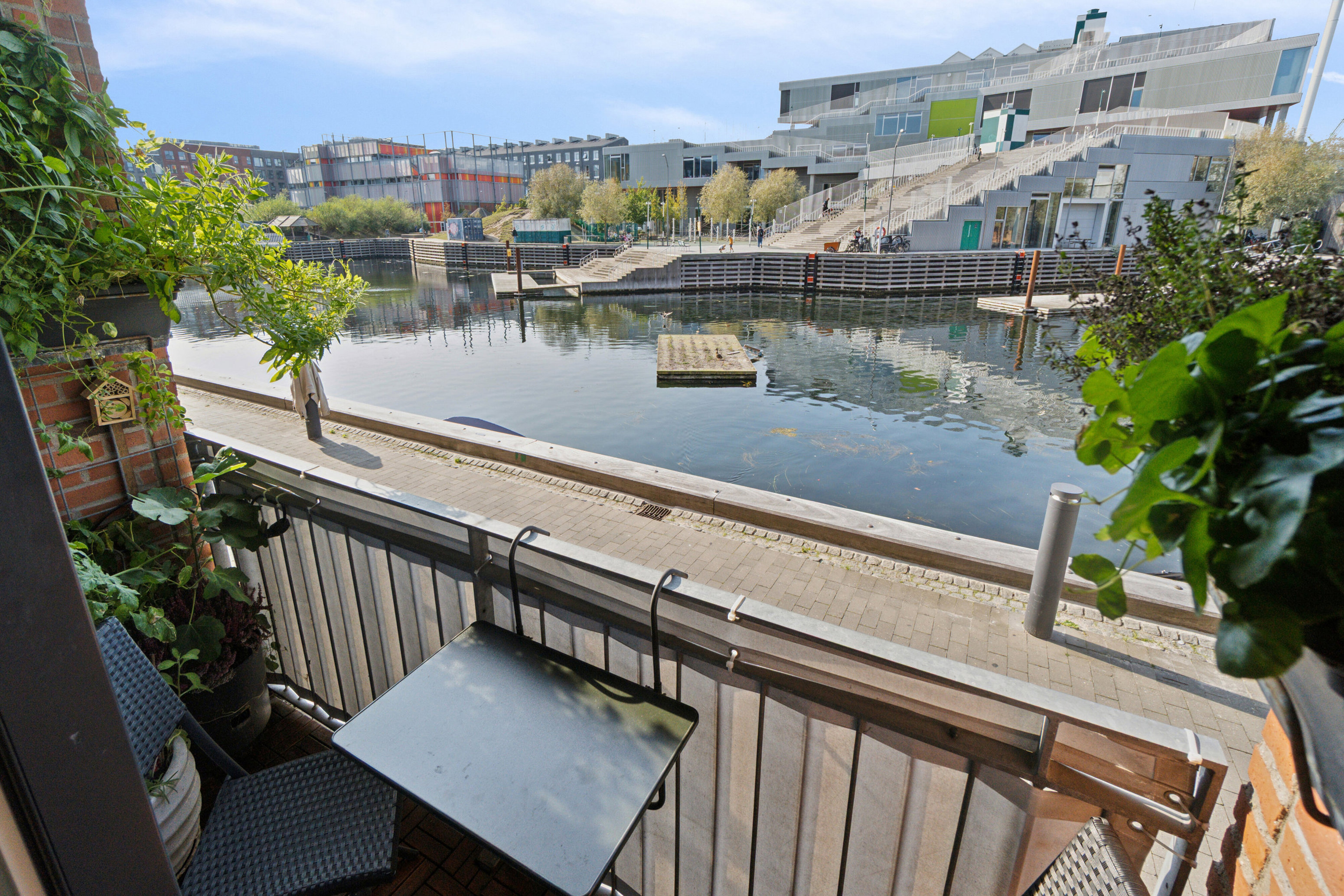 Altanen bliver hurtigt et af lejlighedens absolutte højdepunkter. Herfra har I udsigt til kanalens rolige vand og et åbent kig til himlen, der skifter karakter i takt med vejret og dagens gang. Det er et sted, der indbyder til både morgenkaffe eller afslapning i aftensolen efter en lang dag.