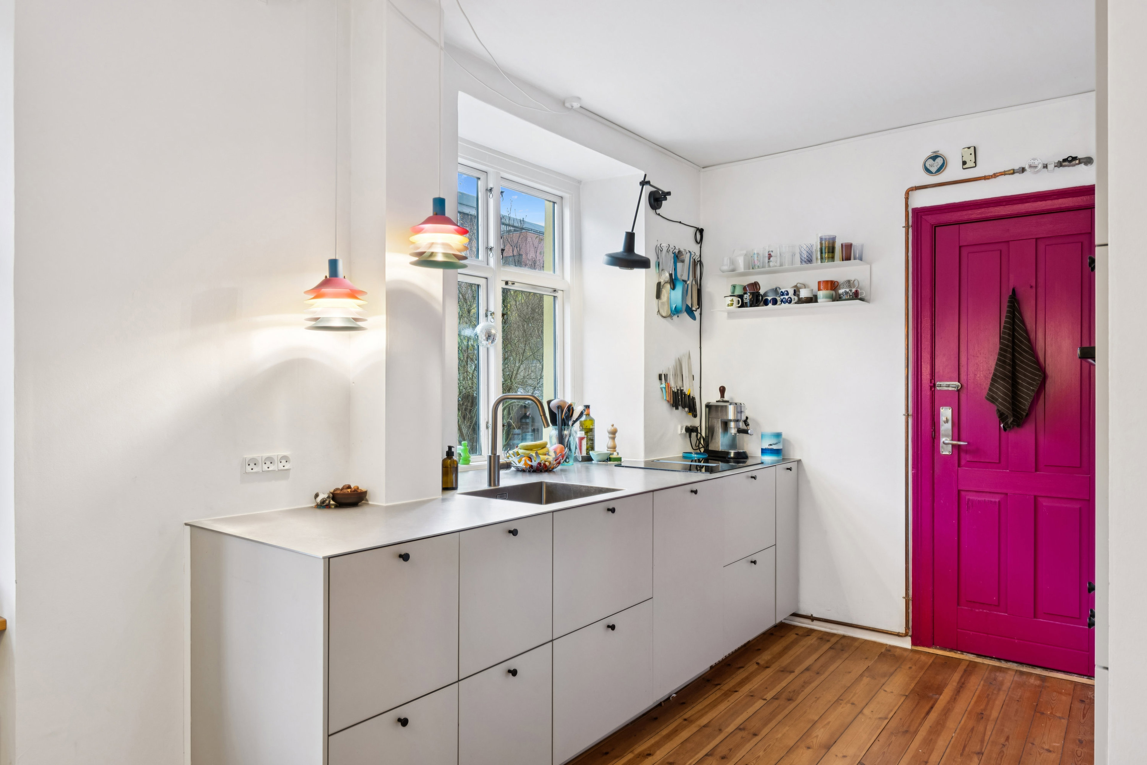 73 m2 charmerende lejlighed i gammel hyggelig stil med plankegulve, stuklofter, dybe vindueskarme og dannebrogsvinduer, der ved første øjekast skaber hjemmets klassiske og lyse atmosfære. Og så ser man det flotte køkken fra 2023, der gør enhver æstetiker og hjemmekok glad – der er alt i hårde hvidevarer. Køkkenet fremstår med mange skuffer og massiv stålbordplade, der er særligt tilpasset, så den går helt ud til vinduet. Køkkenet åbner sigt ud i alrummet hvor der er spiseplads for 6-8 personer. Skøn stue, ensuite, værelse. Badeværelset et netop tilstrækkeligt stort så man har bruseniche i den ene side. I gangen er der indhak med plads til overtøjet og sko. Der kan meget enkelt åbnes op igen, fra gangen til soveværelset, så boligen kan deles af to personer.