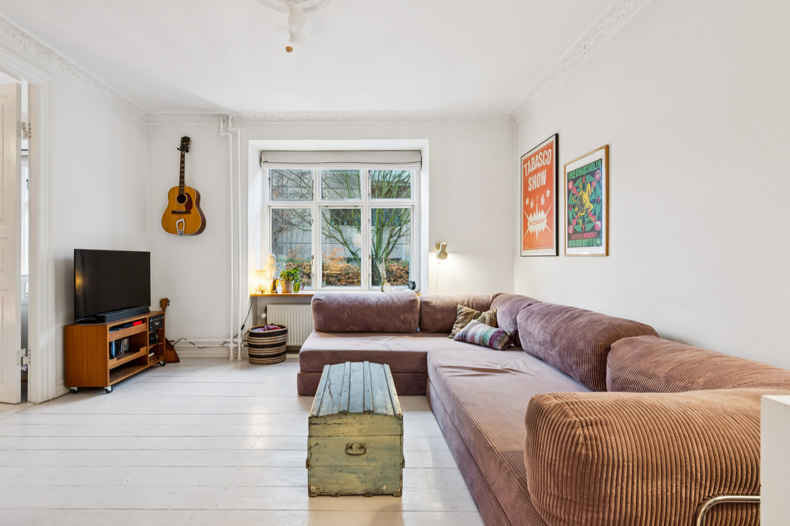 Lejligheden, som er en høj stuelejlighed, understøtter stilen i ejendommen som er opført i 1899. Fra vejen bliver man mødt af et af de dragende vægmalerier som også pryder kvarteret, men bagtil åbner den sydvendte have op, og lokker ud til fred og fordragelighed og rekreativ hygge. Der er vitterligt kun 4 trin ned fra lejligheden til bålsted, blomsterbede, græsplæne og en håndfuld miljøer. Her er en fantastisk hyggelig intim atmosfære, hvor man kommer hinanden ved, blandt de 10 familier i ejendommen. Haven er virkelig et aktiv for beboerne, hvor man samles og hygger. Her får man både have og by i en skøn blanding. Citat fra sælger: "Vi bruger også havevinduet ret meget til at sende ting ind og ud af :)"