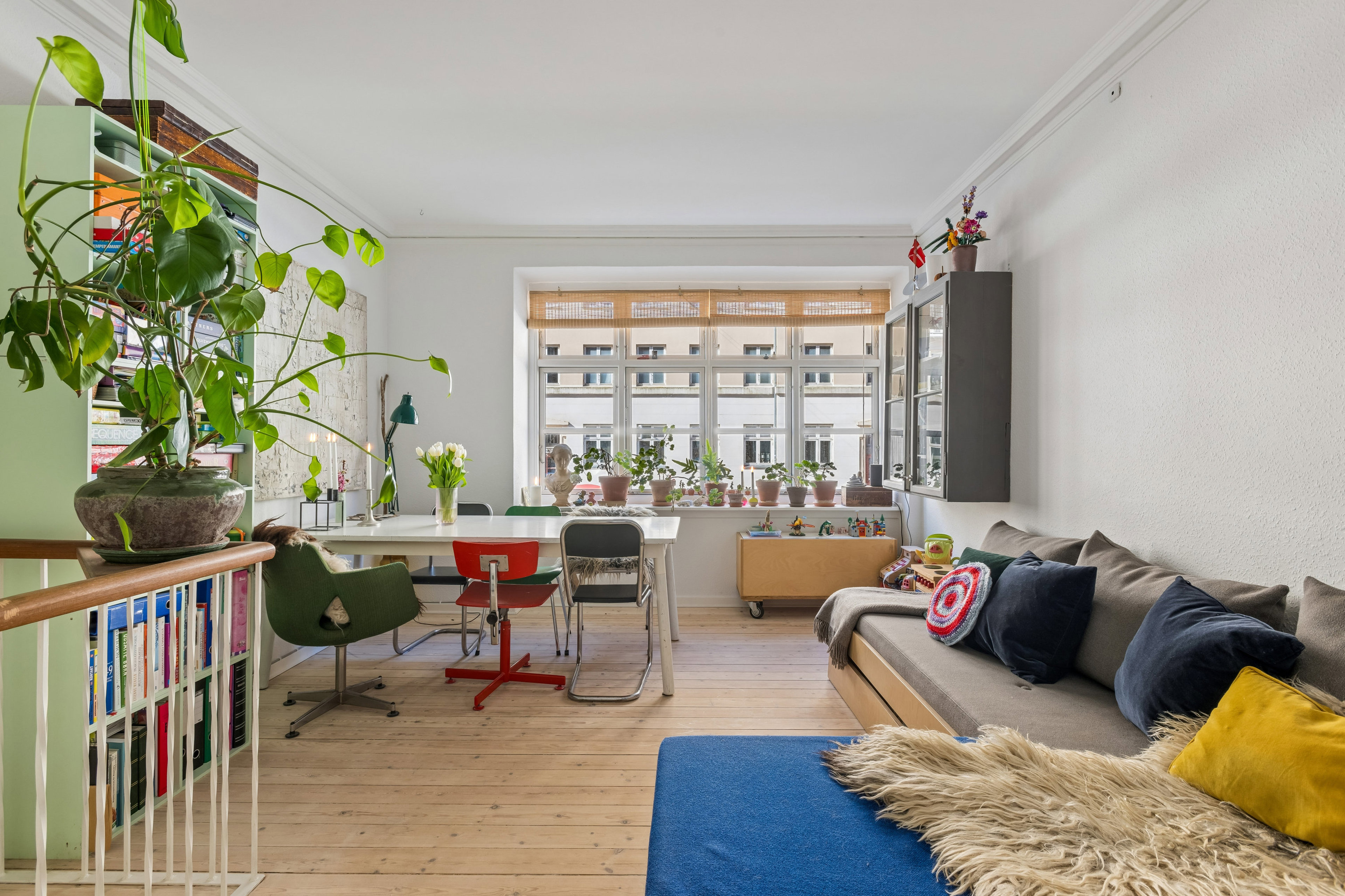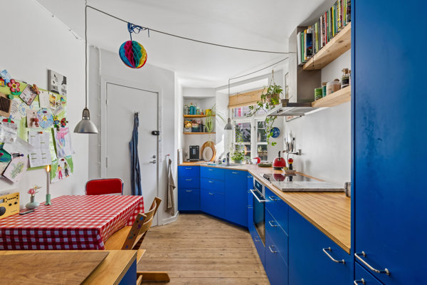 Stuklofterne hænger stadig over rummene, gulvene har tyngde, og planløsningen er yderst veldisponeret. Sådan kan man ganske kort beskrive de 64 m2, der nu er på højkant her på Amager – og disse tilsættes nogle gode bonuskvadratmeter, der gemmer sig nedenunder.