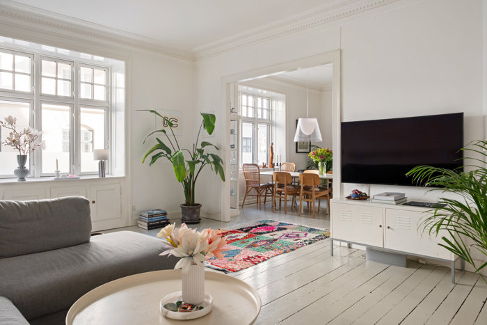 Alt i alt en yderst veldisponeret lejlighed med en sjældent god planløsning for denne størrelse. Her får du desuden den unikke mulighed for direkte adgang til gården – en sjælden kvalitet, der giver en skøn forbindelse mellem inde- og udeliv.