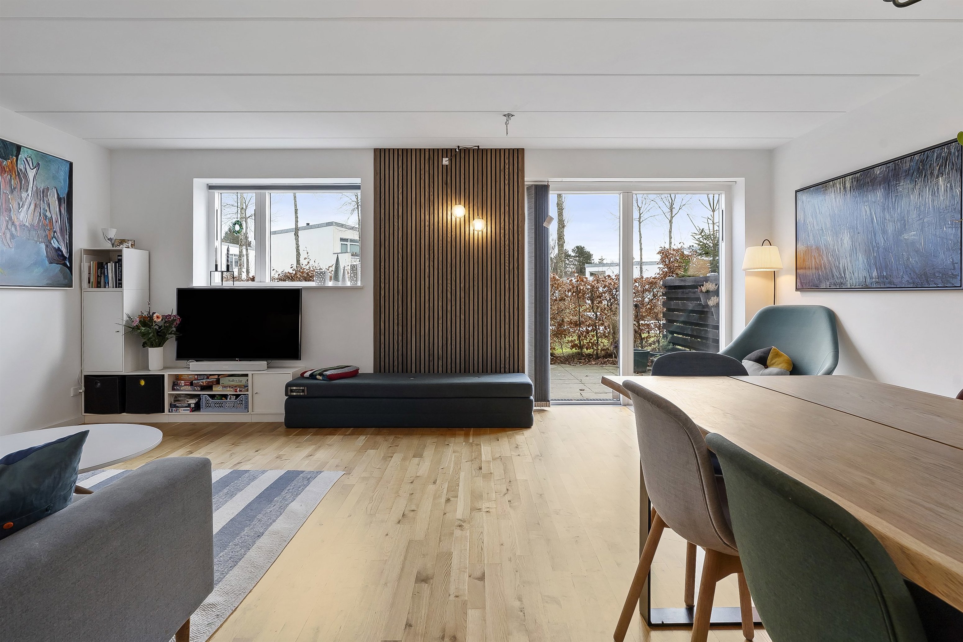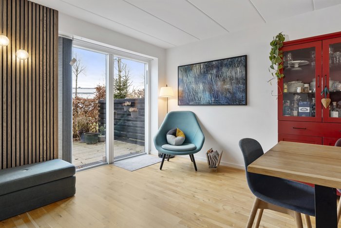 Velholdt funkisinspireret rækkehus fra 2016 med 140 veldisponerede m², 3–4 værelser, 2 badeværelser og et fantastisk leverum, hvor familien naturligt samles.